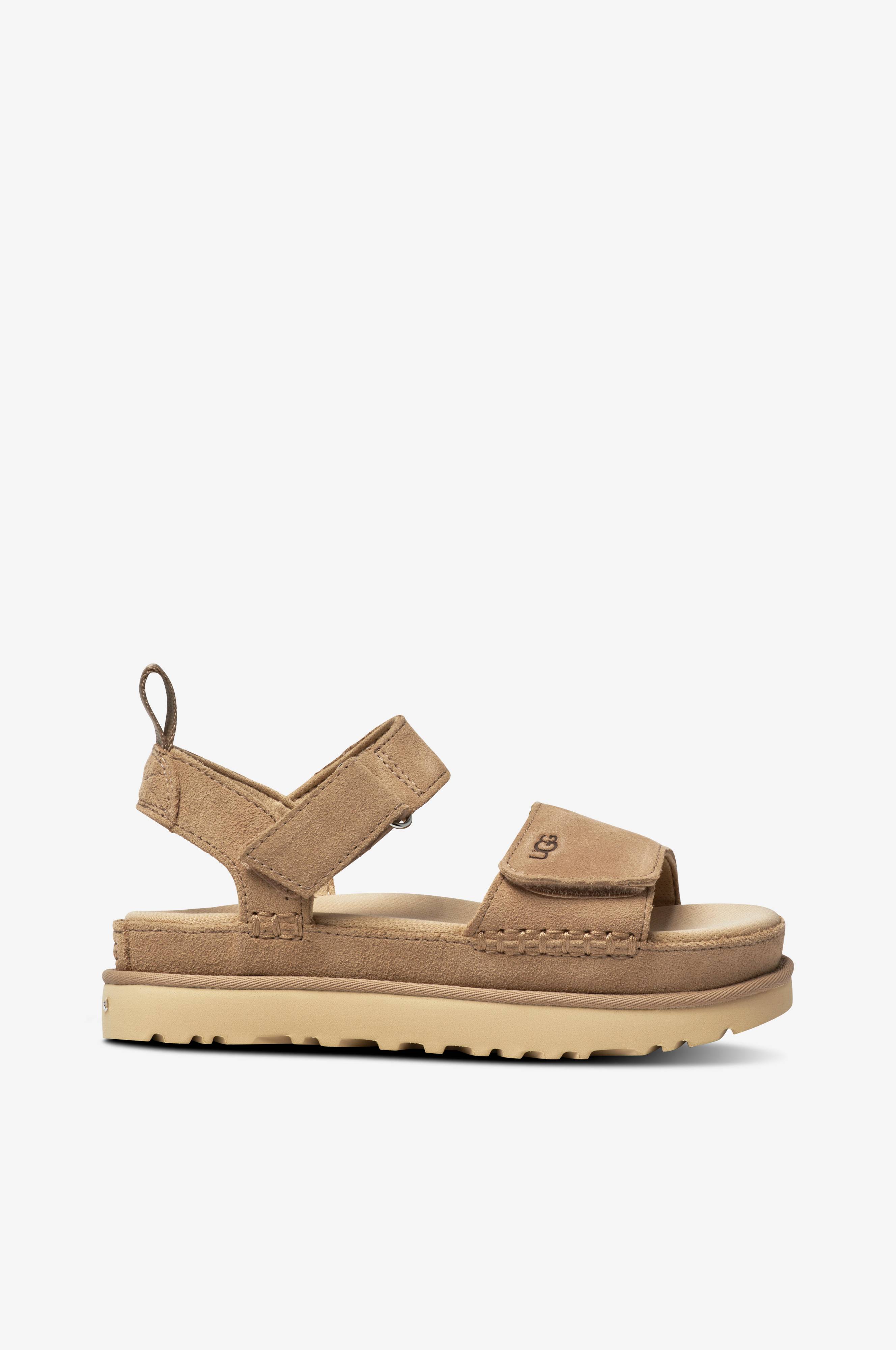 • Sandaler i ruskind• Bredt, justérbart velcrobånd over foden• Justérbar ankelstrop• Vævet træksnor bagpå• Blød, stofbetrukket fodseng• Platformsål i gummi• Sålhøjde: 4,5 cm