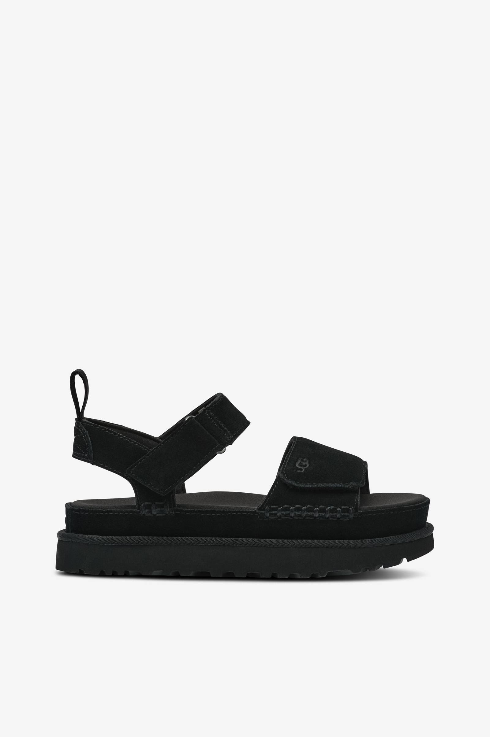 • Sandaler i ruskind• Bredt, justérbart velcrobånd over foden• Justérbar ankelstrop• Vævet træksnor bagpå• Blød, stofbetrukket fodseng• Platformsål i gummi• Sålhøjde: 4,5 cm