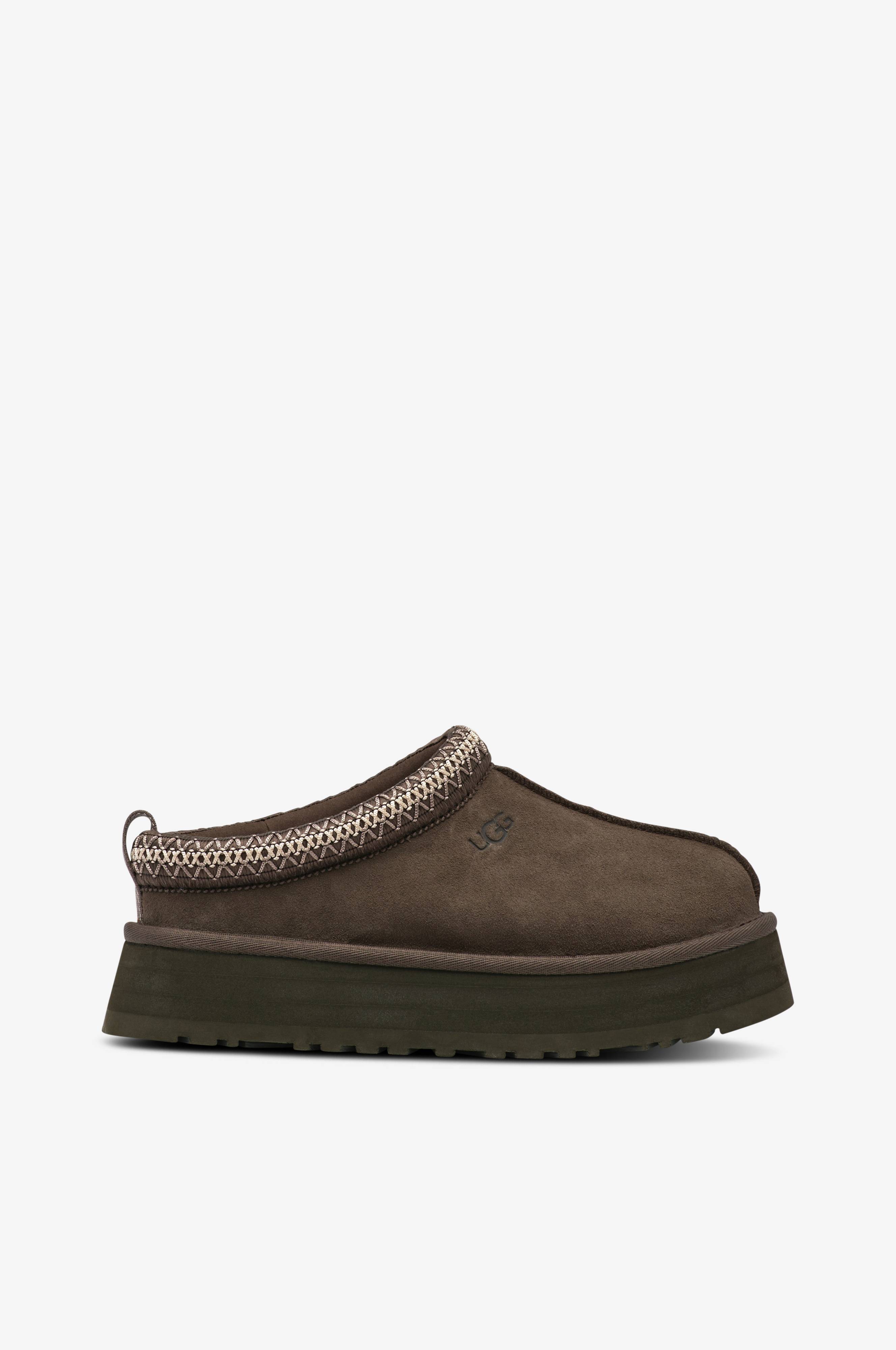 • Model i ruskind• Defineret søm på oversiden• Foret, broderet kant med flap bagpå• Blød kunstig pels indvendigt• Høj sål• Sålhøjde: 3,5 cm