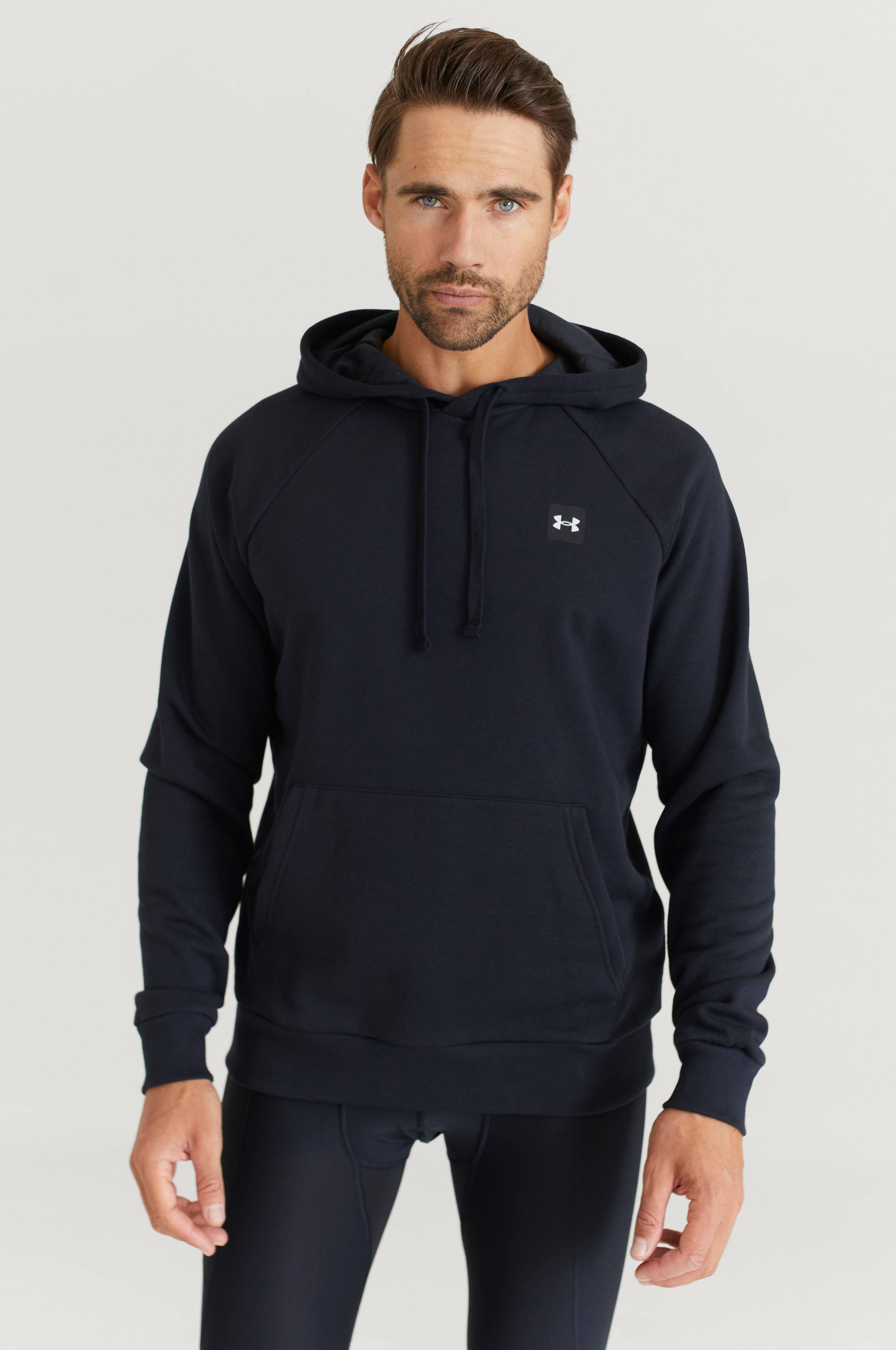 Hættetrøje UA Rival Fleece Hoodie fra Under Armour med blød, børstet inderside. Foret hætte med løbegang, raglanærme og kængurulomme. Rib i ærmekant og kanten forneden.