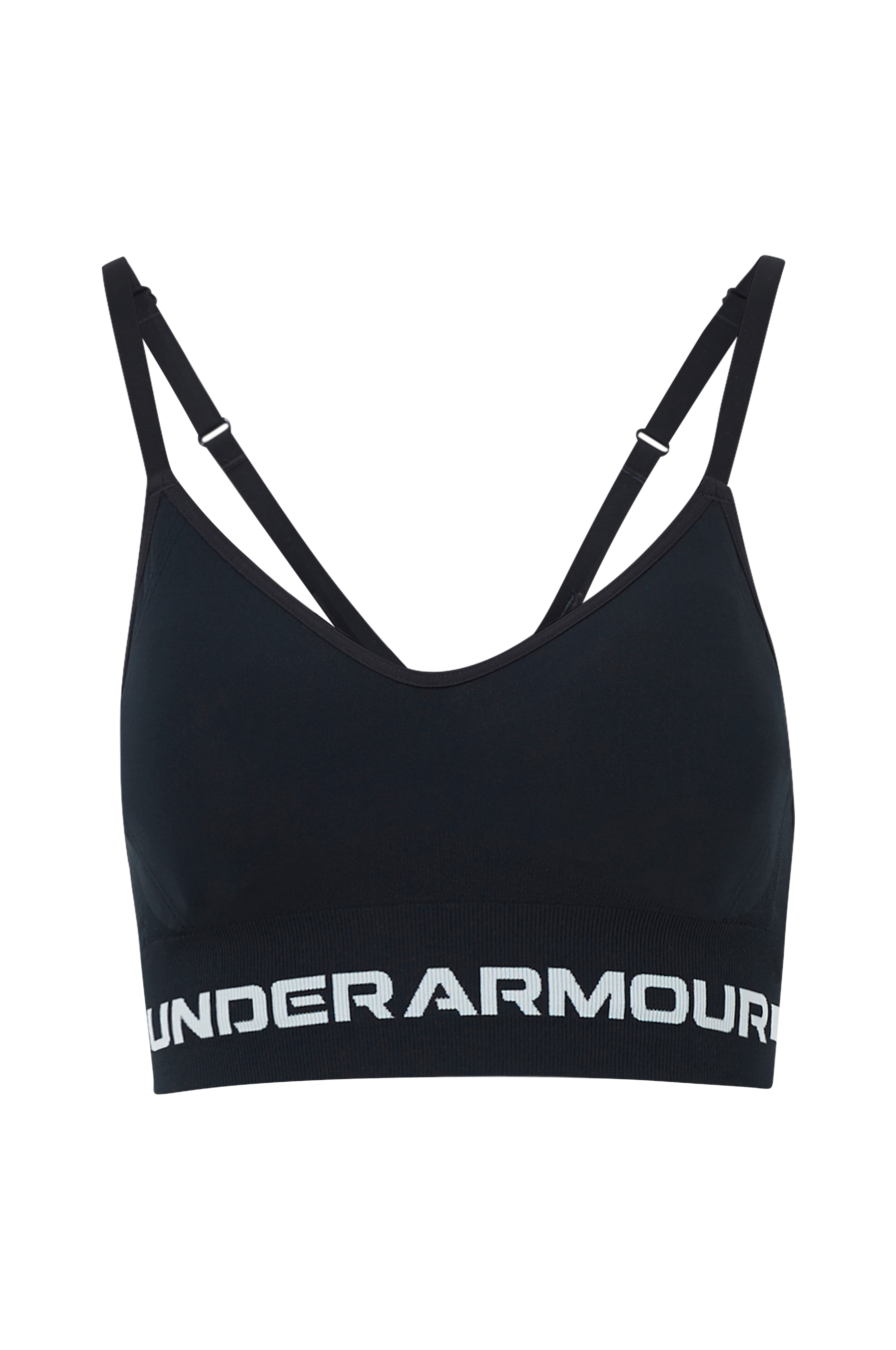 Sports-bh UA Seamless Low Long Bra fra Under Armour med let støtte, fremstillet i sømløst materiale med stretch. Uden lukning. Smalle justerbare skulderstropper. Skåle med udtagelig vattering. Elastisk ribkant forneden.