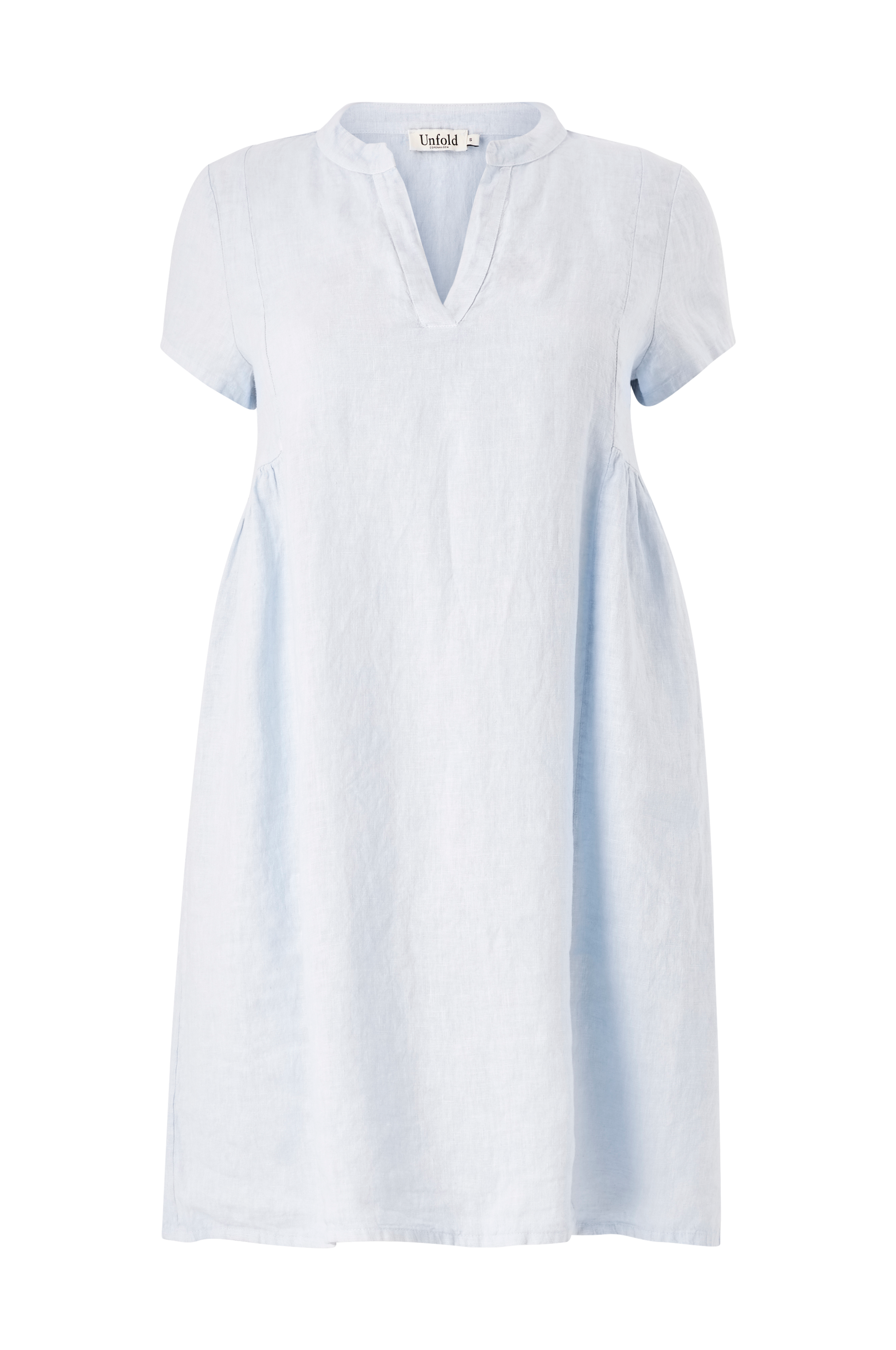 • Kjole i hør• Feminin pasform• V-udskæring• Korte ærmer• Rynket søm i siderne• Store størrelser• Længde: 100 cm i størrelse S