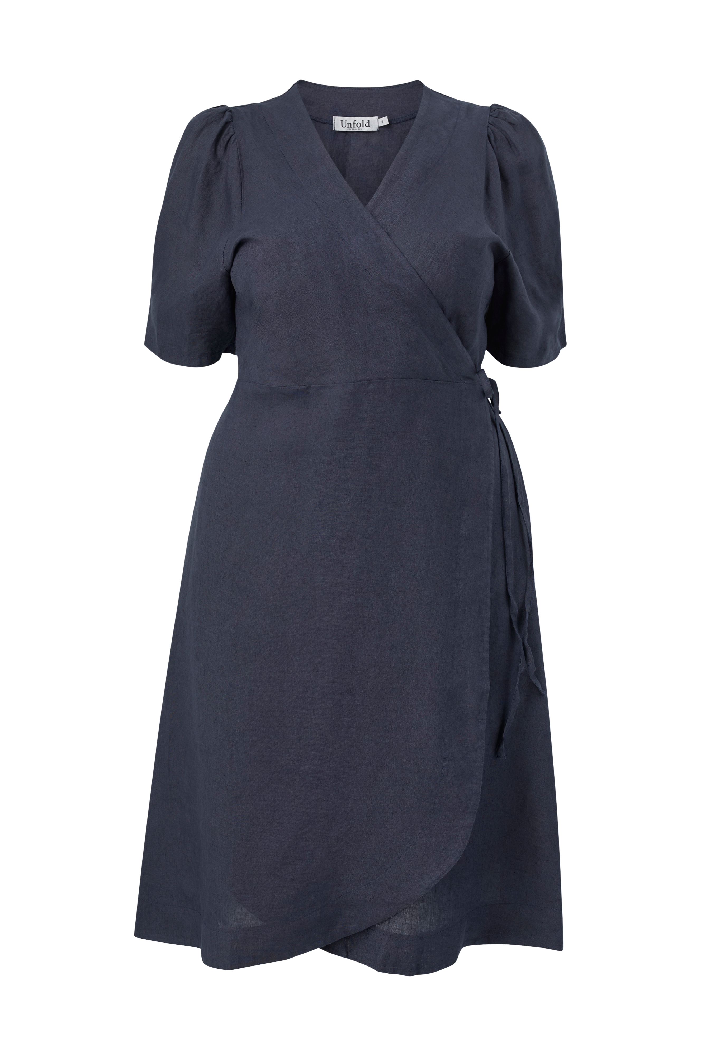 • Slå-om kjole i hør• Bindebånd i siden• Korte ballonærmer• Længde: 114 cm i størrelse S