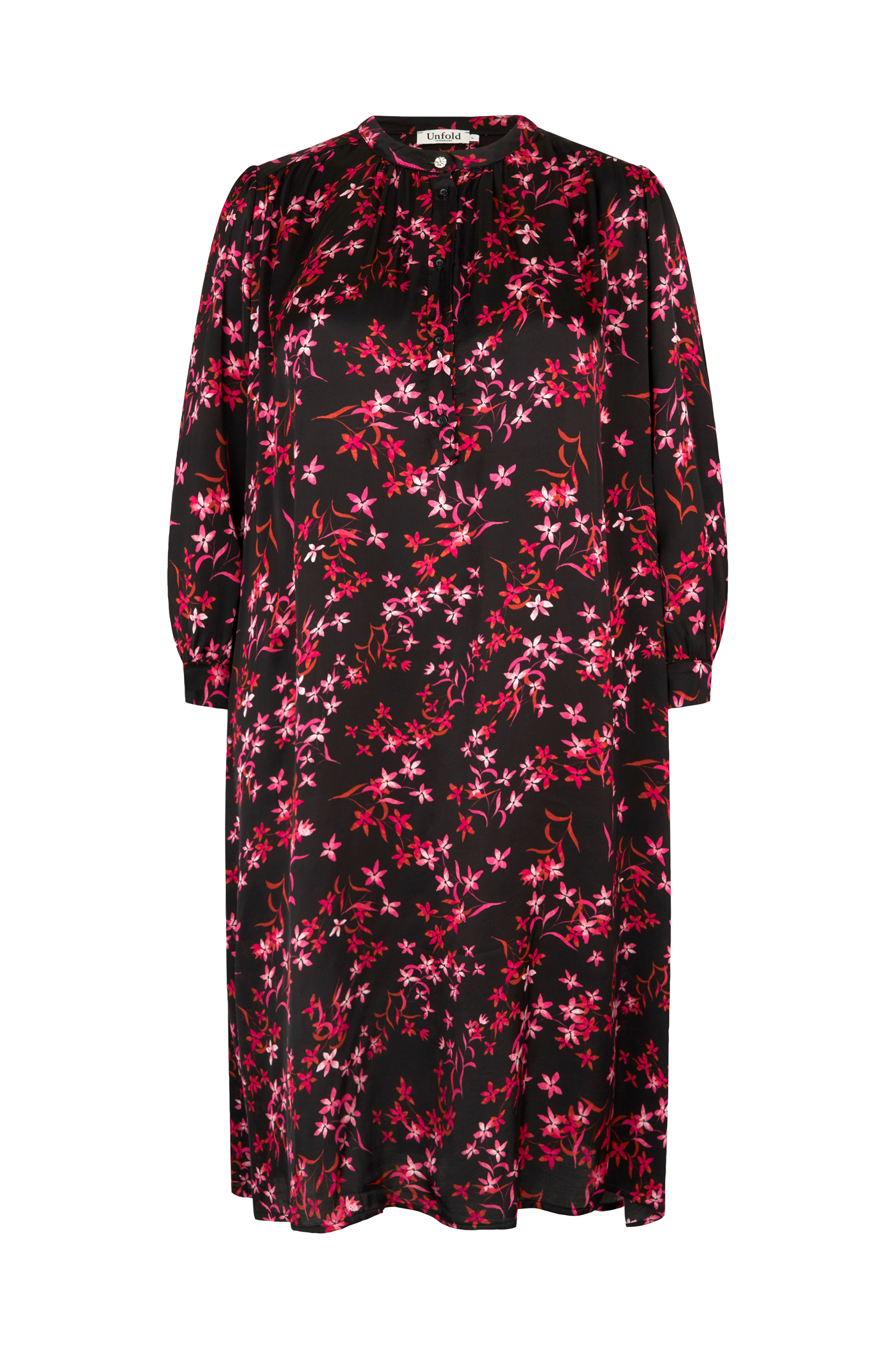 • Kjole i viskose• Løs pasform• Rund halsudskæring• Kort knaplukning foran• Lange ærmer• Knapper ved ærmeafslutningerne og på toppen med skinnende sten• Løst bæltespænde• Sidelommer• Store størrelser• Længde: 124 cm i størrelse S