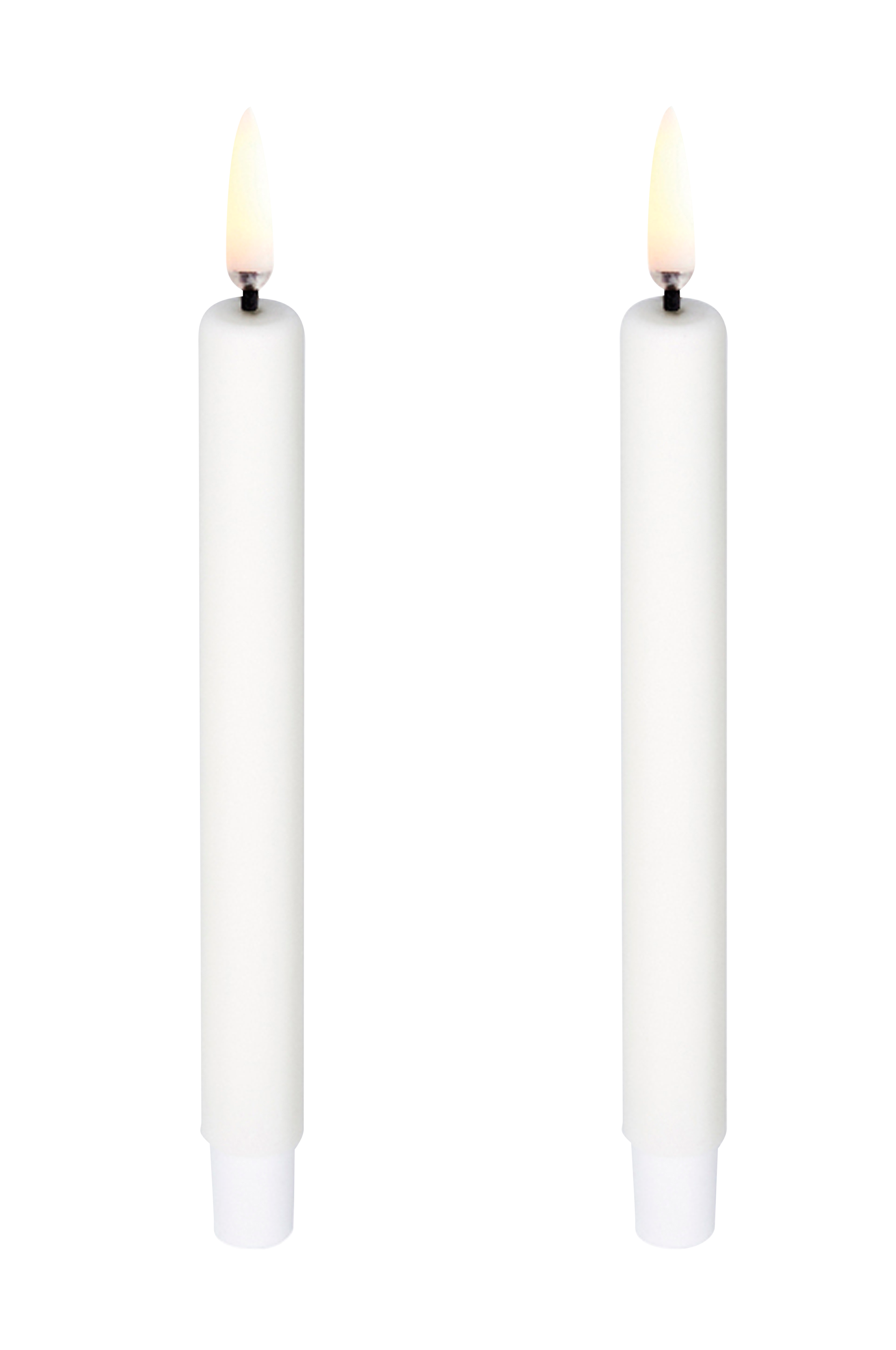Kronelys med LED-lys, 2-pak. Den patenterede 3D-flamme giver et meget realistisk indtryk af en blafrende, varmende flamme.