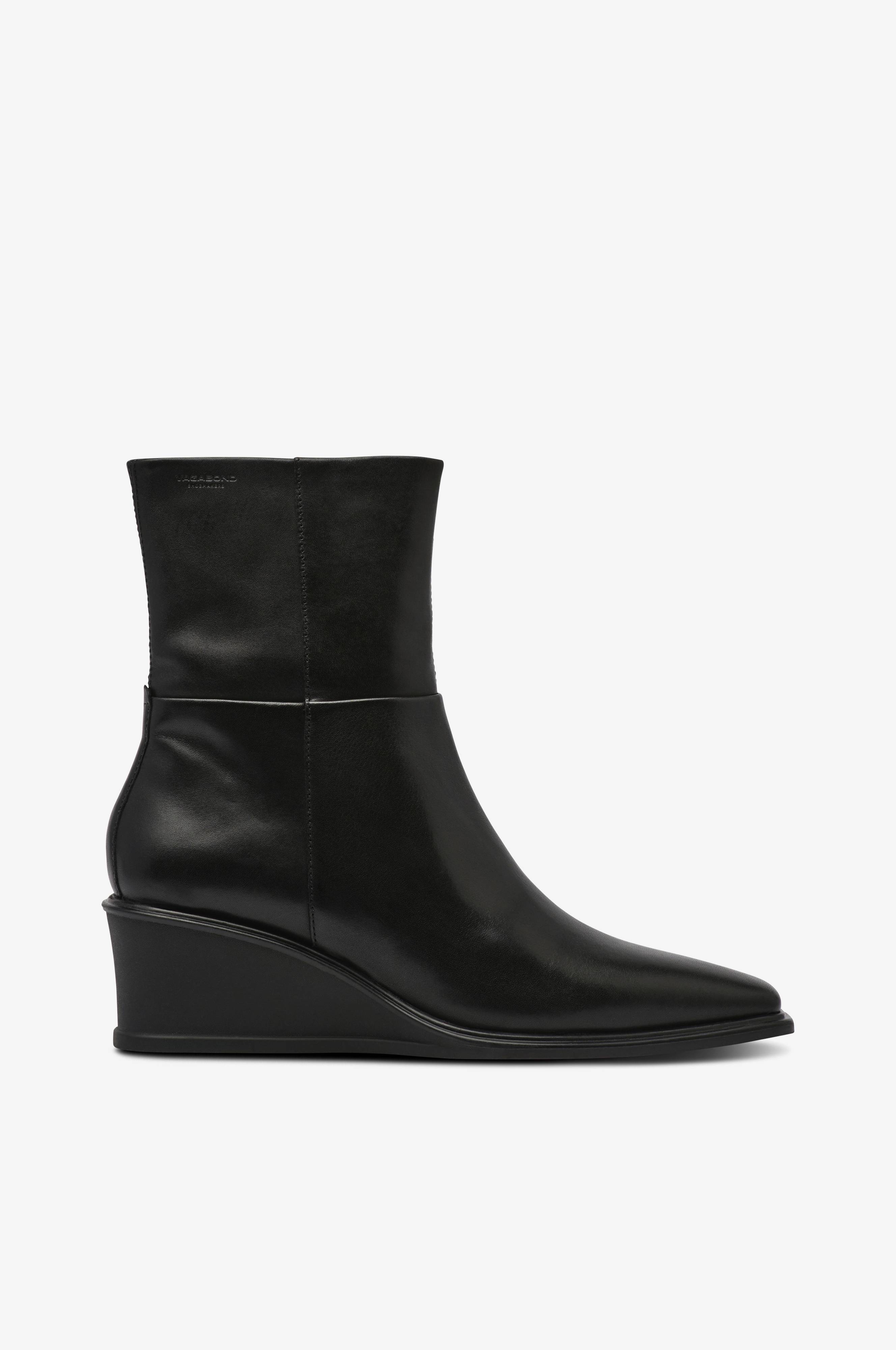 • Model i læder• Lige snude• Lynlås på indersiden af skaftet• Wedgehæl• Tekstilforing• Indersål i læder• Hælhøjde: 5,5 cm• Skafthøjde: 17 cm i str. 37