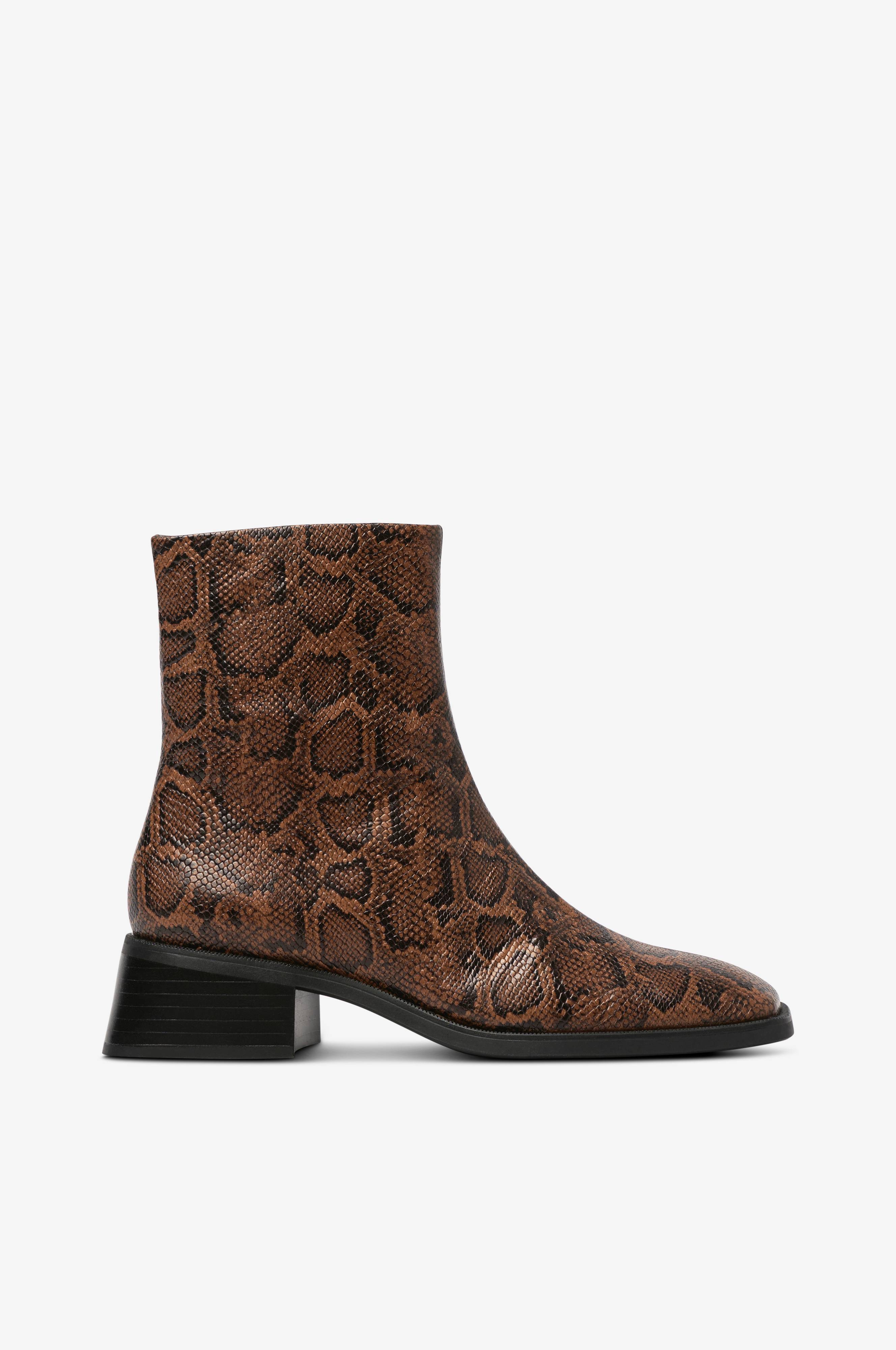 • Model i læder med slangemønster• Lige snude• Lynlås på indersiden• Indersål i læder• Skafthøjde: 15,5 cm i str. 37• Hælhøjde: 4,5 cm