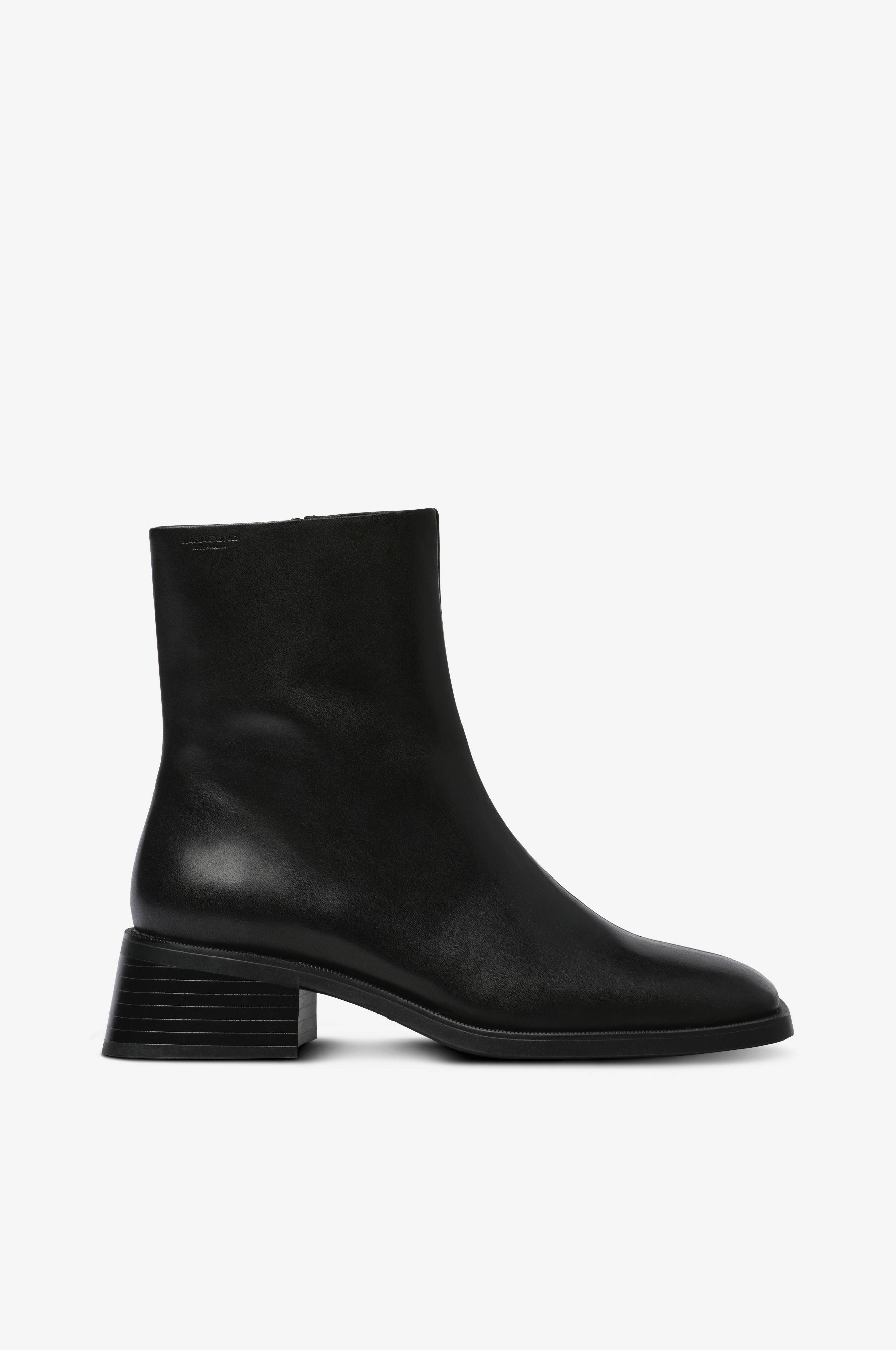 • Model i læder• Kantet snude• Vertikal søm foran• Lynlås på indersiden• Tekstilforing• Indersål i læder• Skafthøjde: 16 cm i str. 37• Hælhøjde: 5 cm