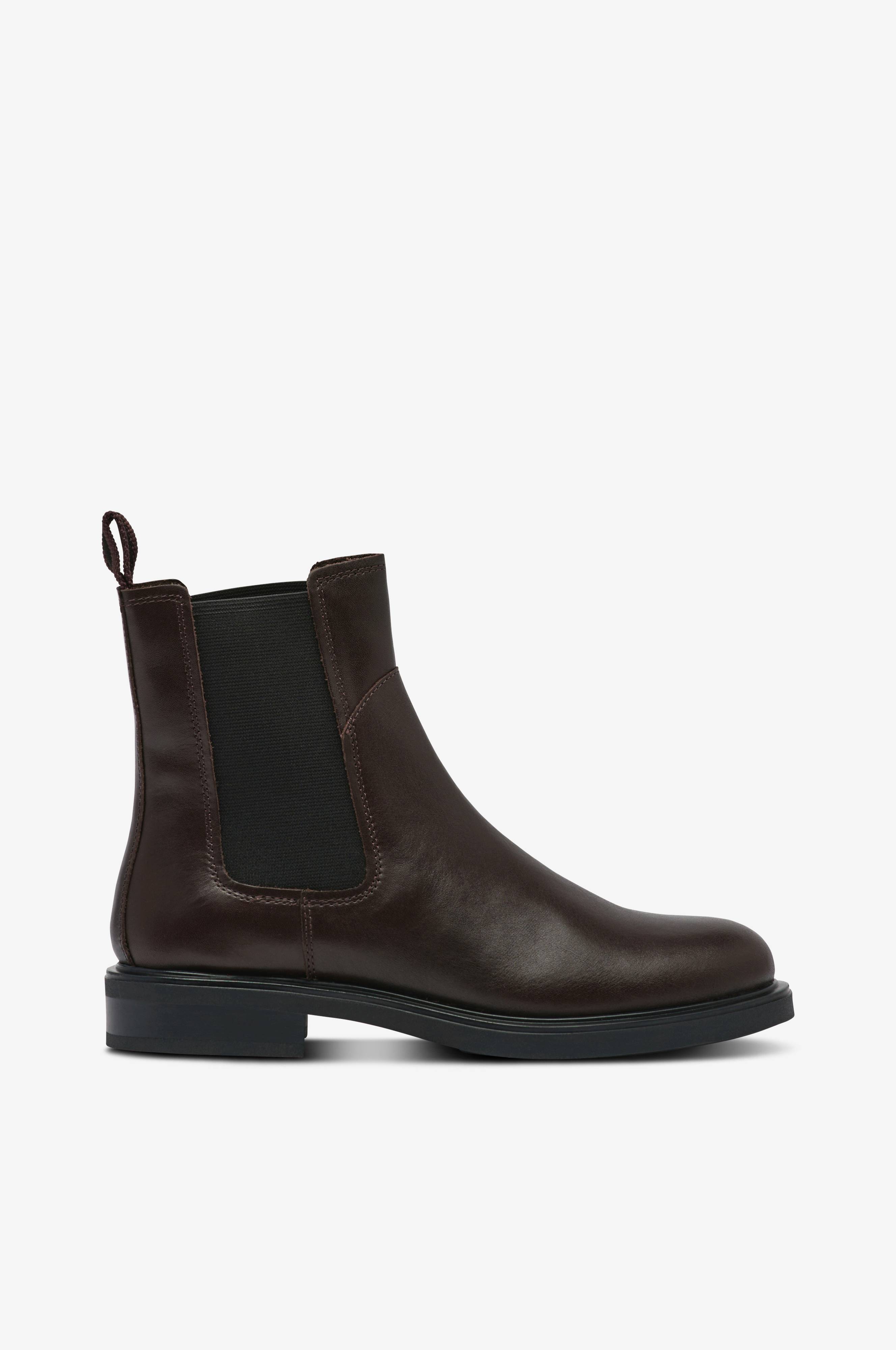 • Chelseaboot i læder med afrundet tåform• Elastiske paneler på begge sider af skaftet• Trækstrop bag på skaftet• Ydersål i gummi• Skafthøjde: 15 cm i str. 37