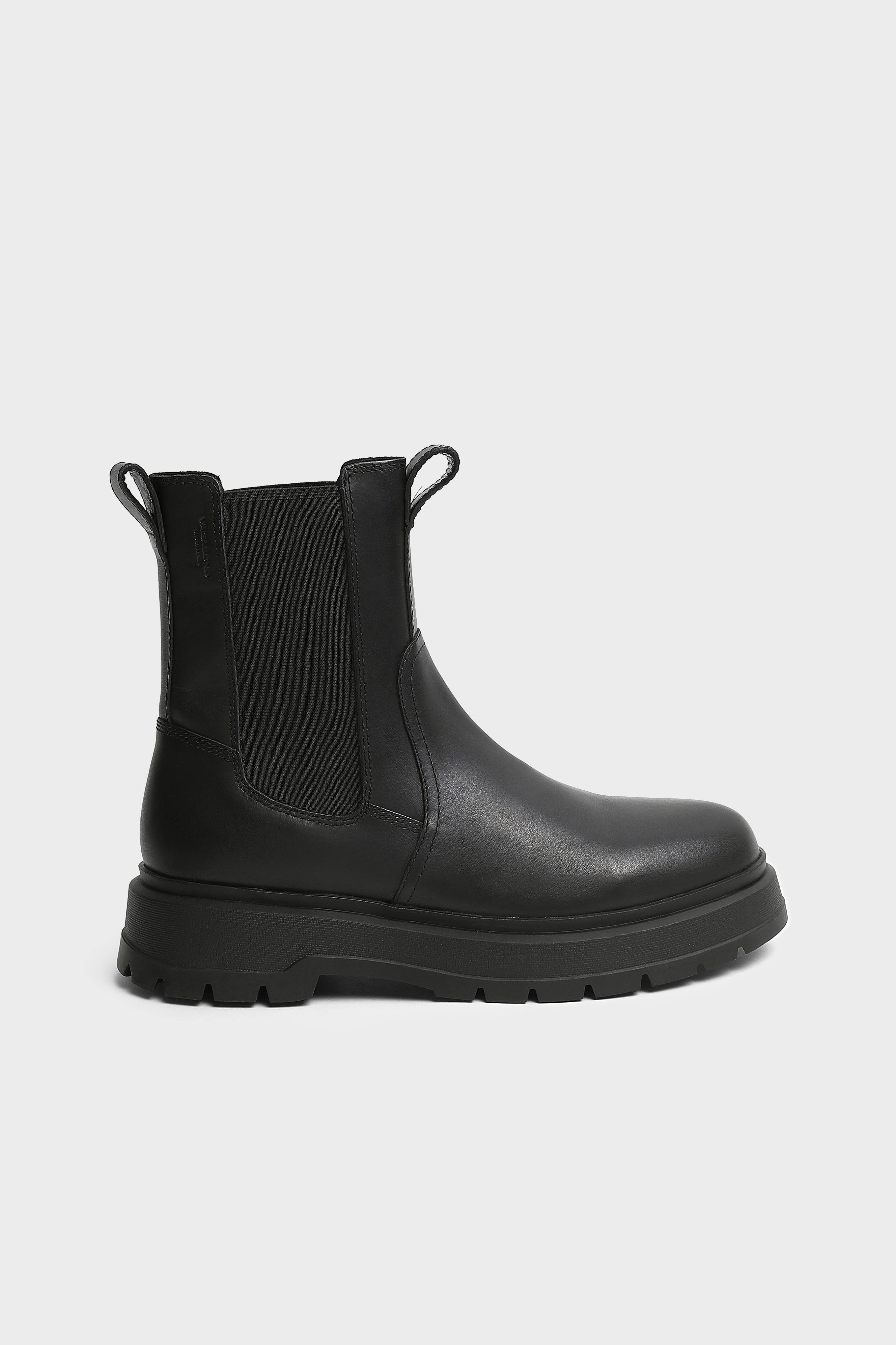 Robuste chelseaboots i skind med elastikindsatse på begge sider af skaftet og høj sål. For i tekstil og skindbetrukket indersål. Grovmønstret ydersål af gummi. Skafthøjde 18 cm.