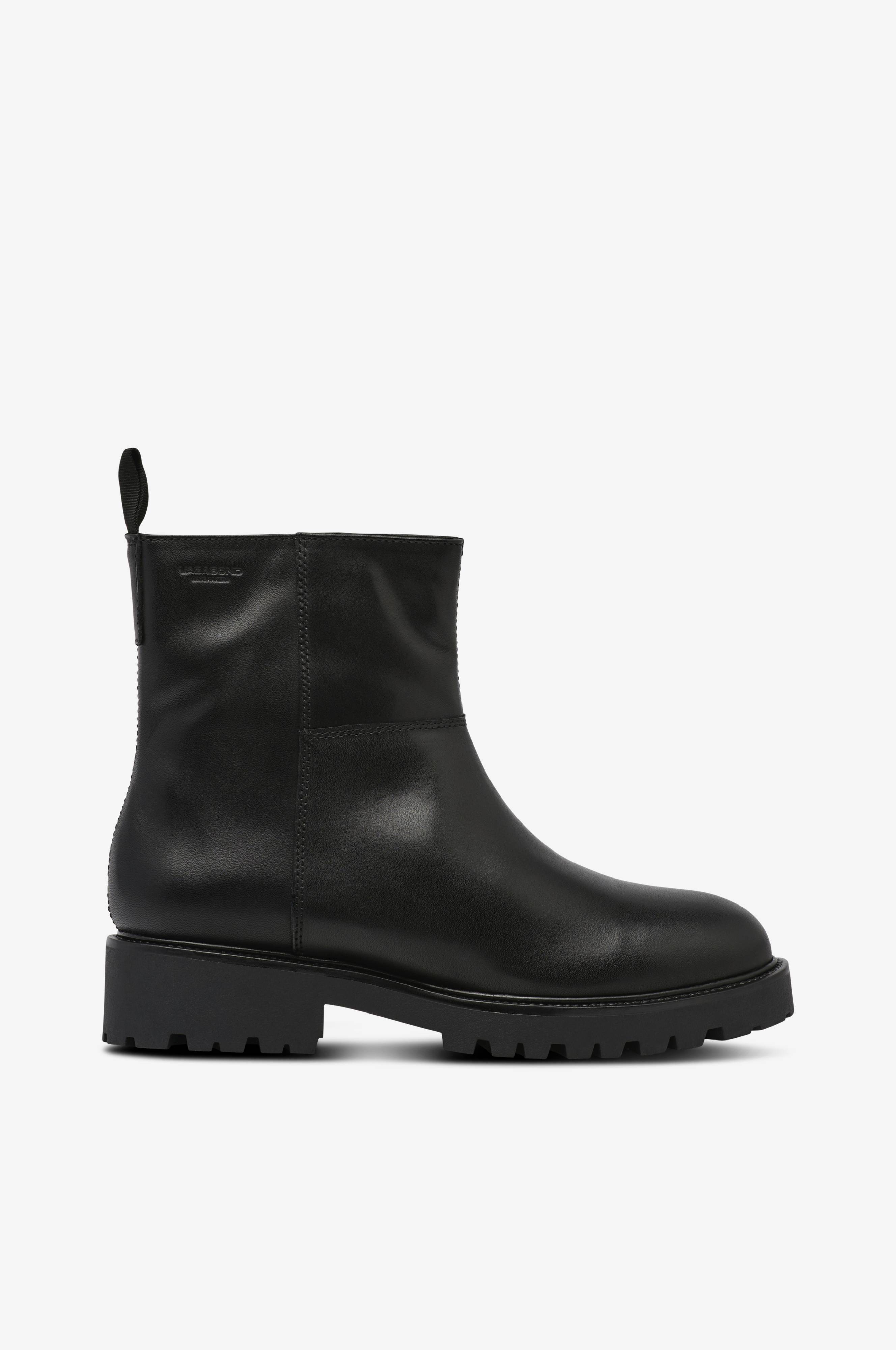 • Varmt forede boots i læder• Afrundet tåform• Lynlås på indersiden af skaftet• Trækstrop bag på skaftet• For i kunstskind• Ydersål i gummi• Hælhøjde: 4 cm• Skafthøjde: 15 cm i str. 37