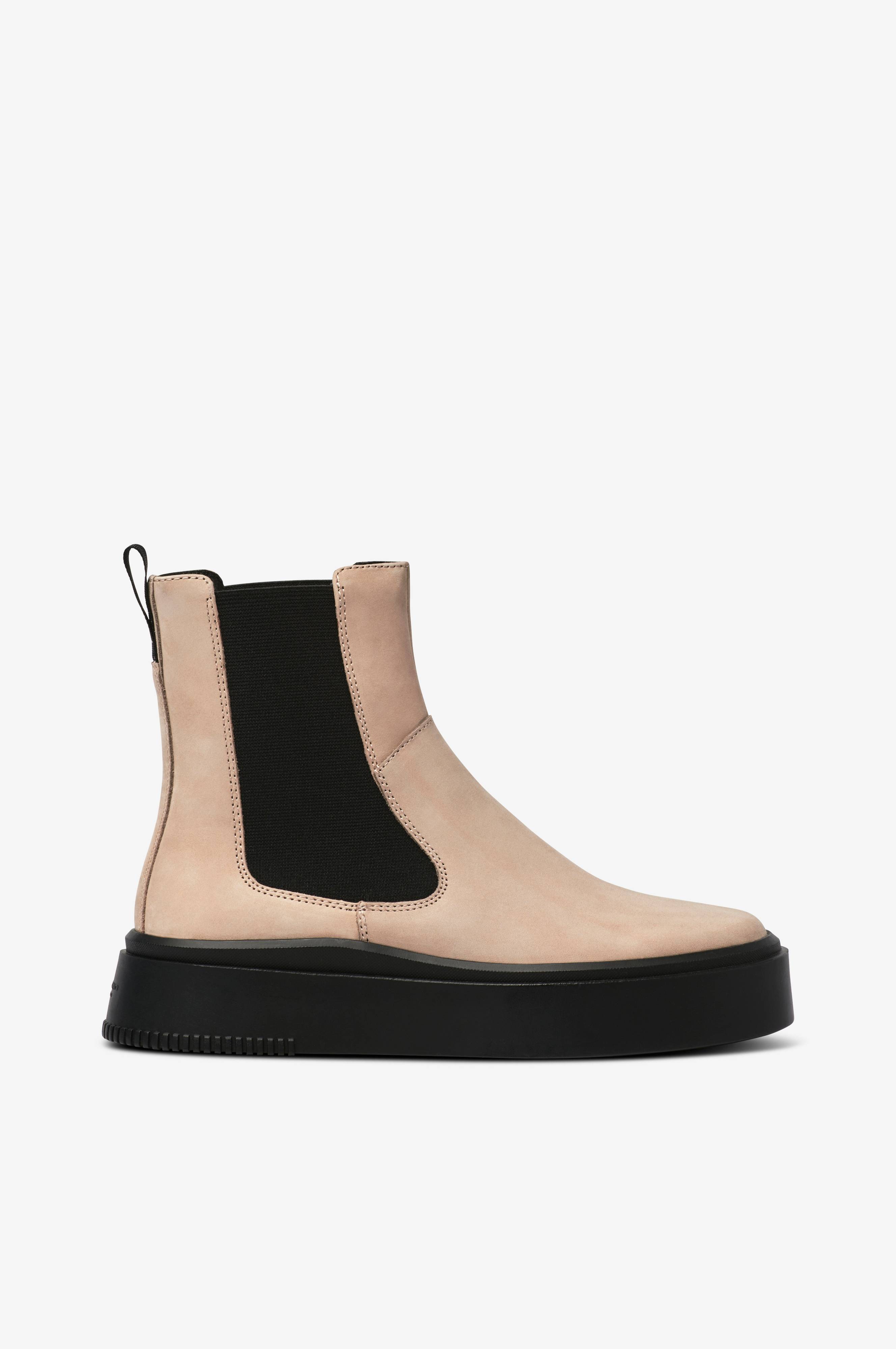 • Model i nubuck• Rund snude• Brede elastiske paneler på siderne• Trækstrop bagpå• Høj sål• Indersål i læder• Skafthøjde: 15 cm i str. 37• Hælhøjde: 4 cm• Sålhøjde: 3,5 cm