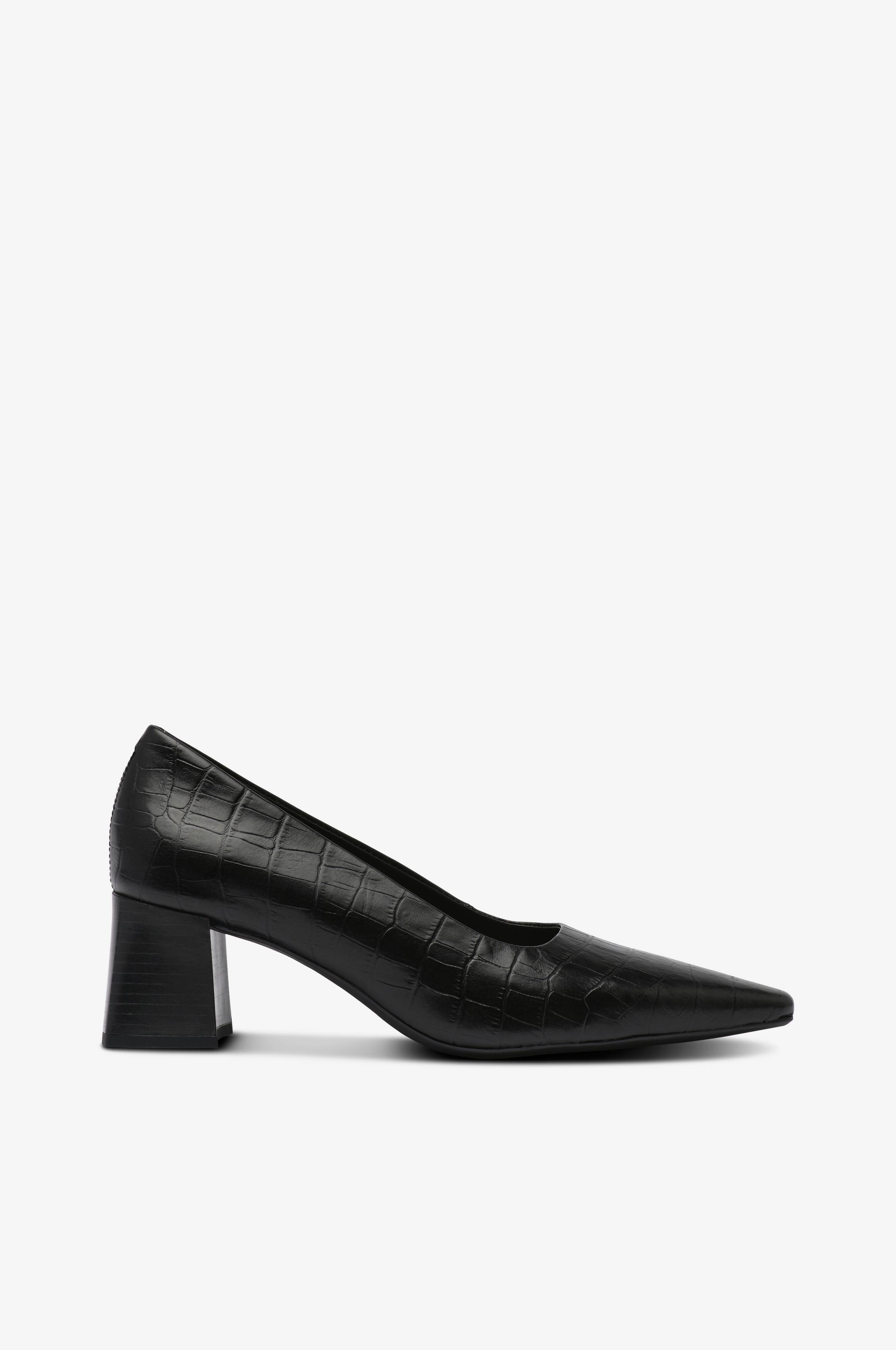 • Tidløse pumps i læder med et krokodillemønster• Spids snude• Blokhæl• Indersål i læder• Hælhøjde: 5,5 cm