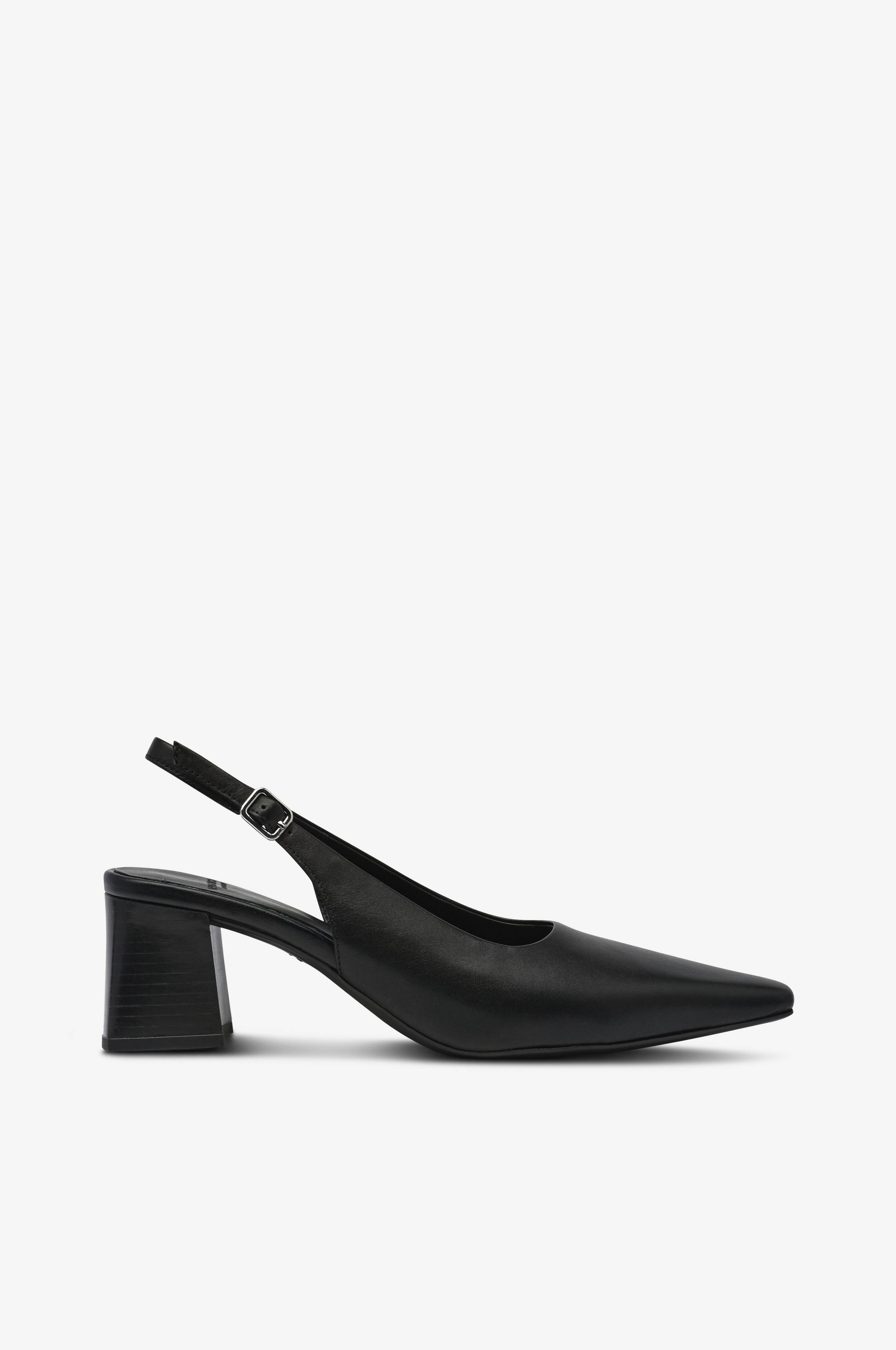 • Model i læder med slingback• Spids snude• Justérbar hælrem med elastisk Vedhæftning• Kantet hæl• Hælhøjde: 6 cm