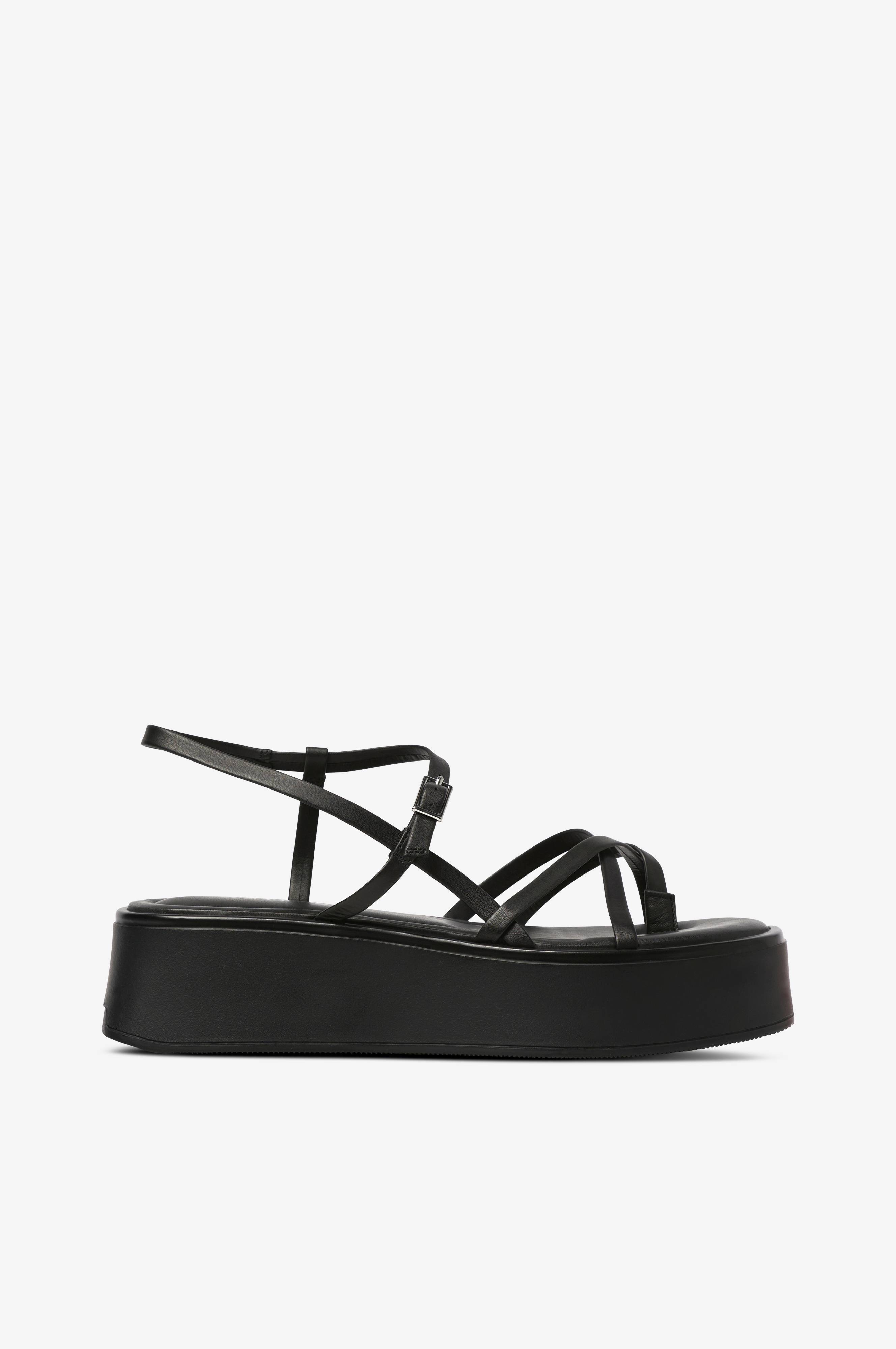 • Platformsål• Tynde remme i læder• Spænde ved anklen• Sålhøjde: 5 cm