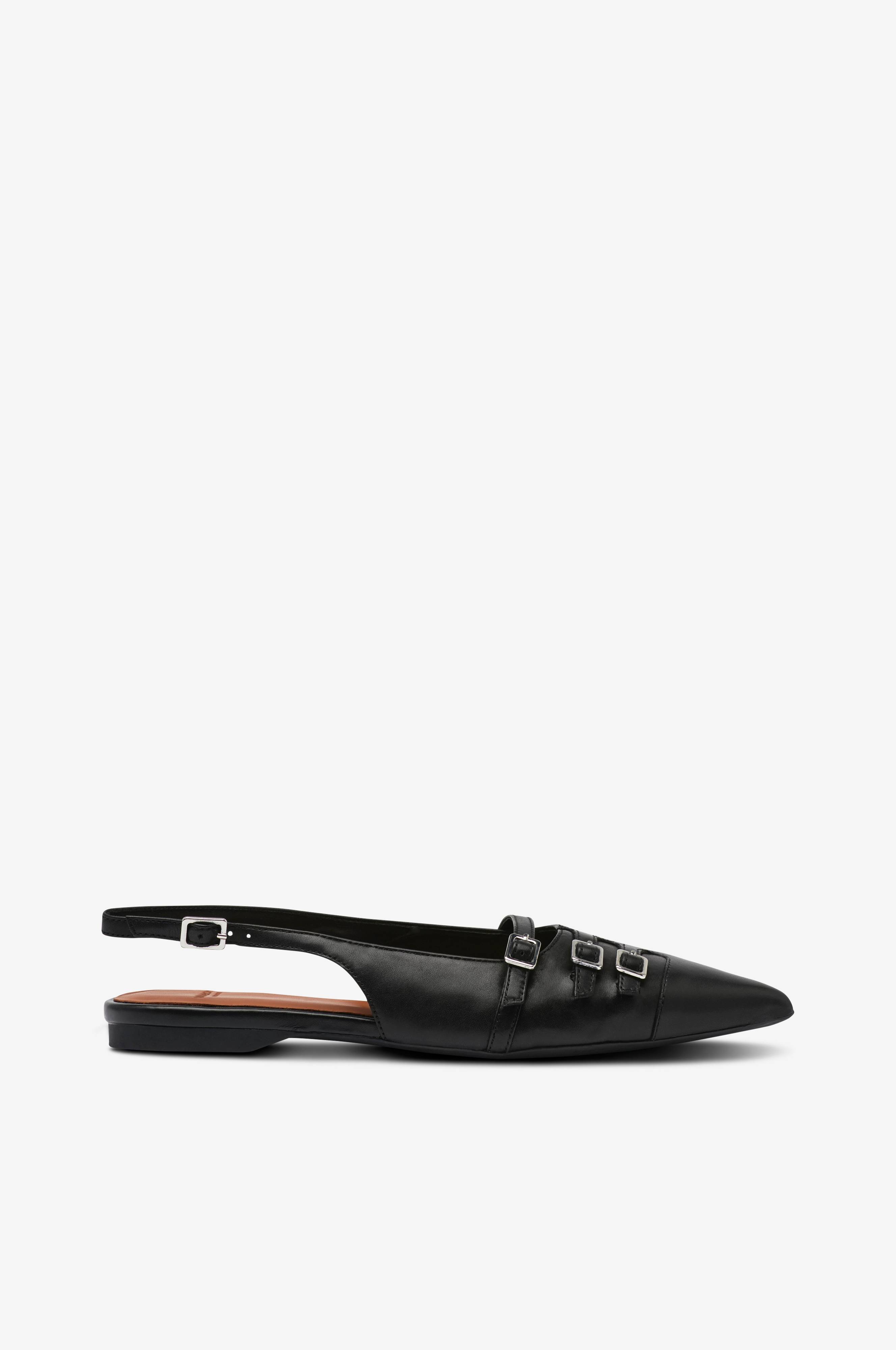 • Slingbacks i læder• Spids snude• Justérbar rem bagpå• Dekorative spænder foran