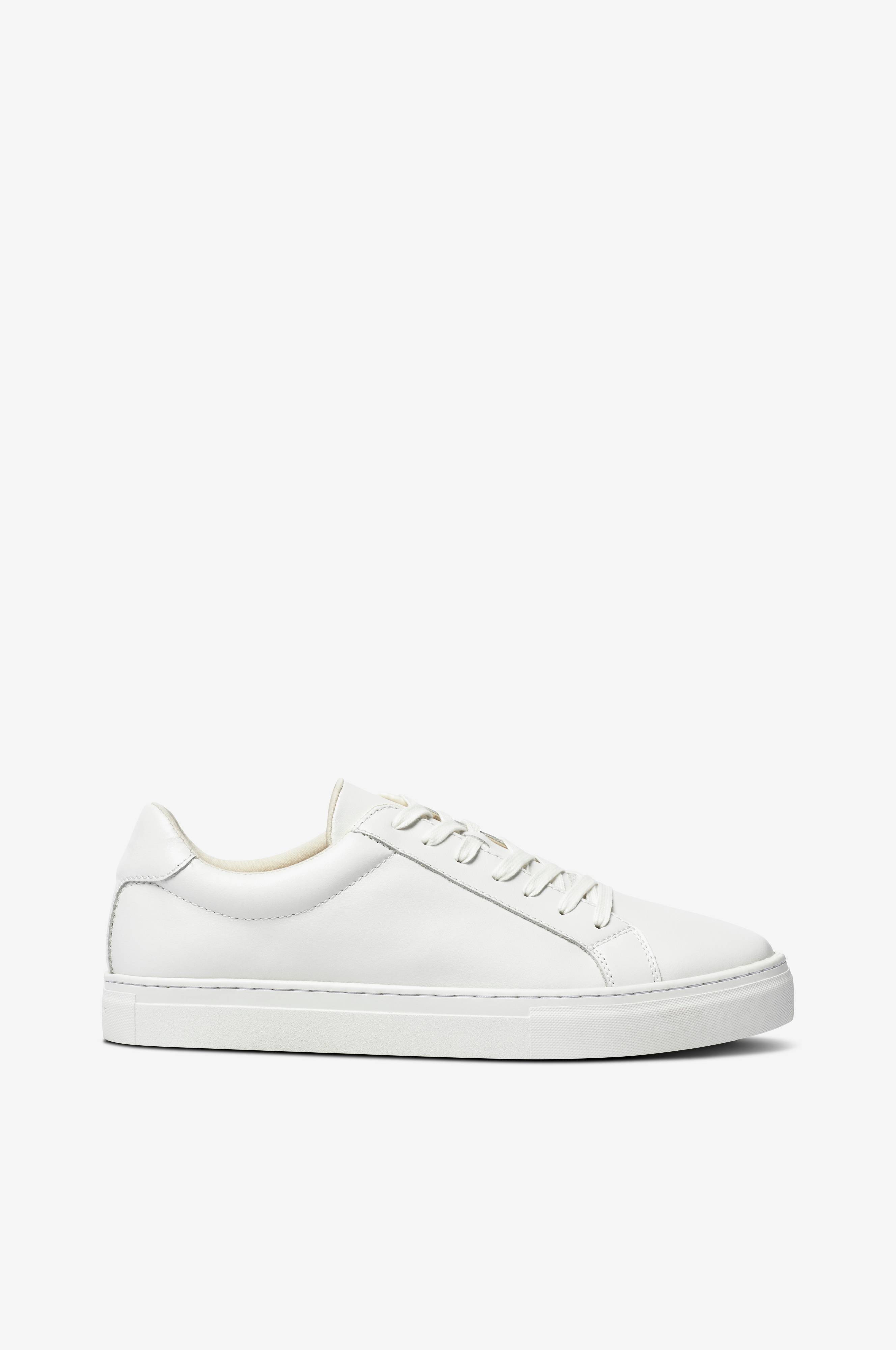 Sneakers i enkel, klassisk model i glat skind. Snøre med fladt snørebånd. Kanten er behageligt vatteret. Udtagelig, formpresset og skindbetrukket indersål.