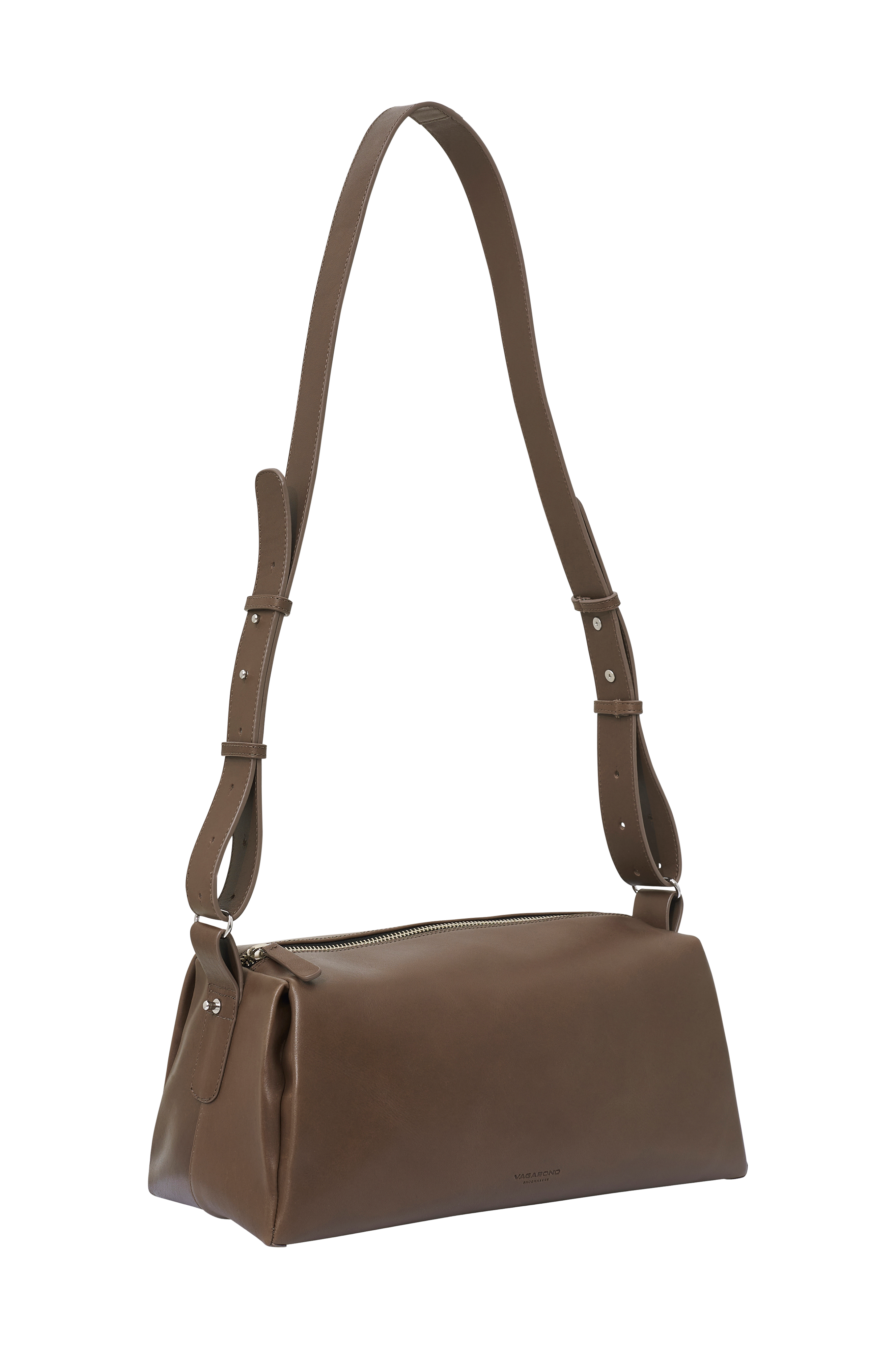Skuldertaske i boxy, rektangulær form fremstillet i glat skind. Tekstilforet inderside med et lynlåsrum. Lynlås foroven samt aftagelig skulderrem.Mål ca. B31 x H13 x D14 cm.