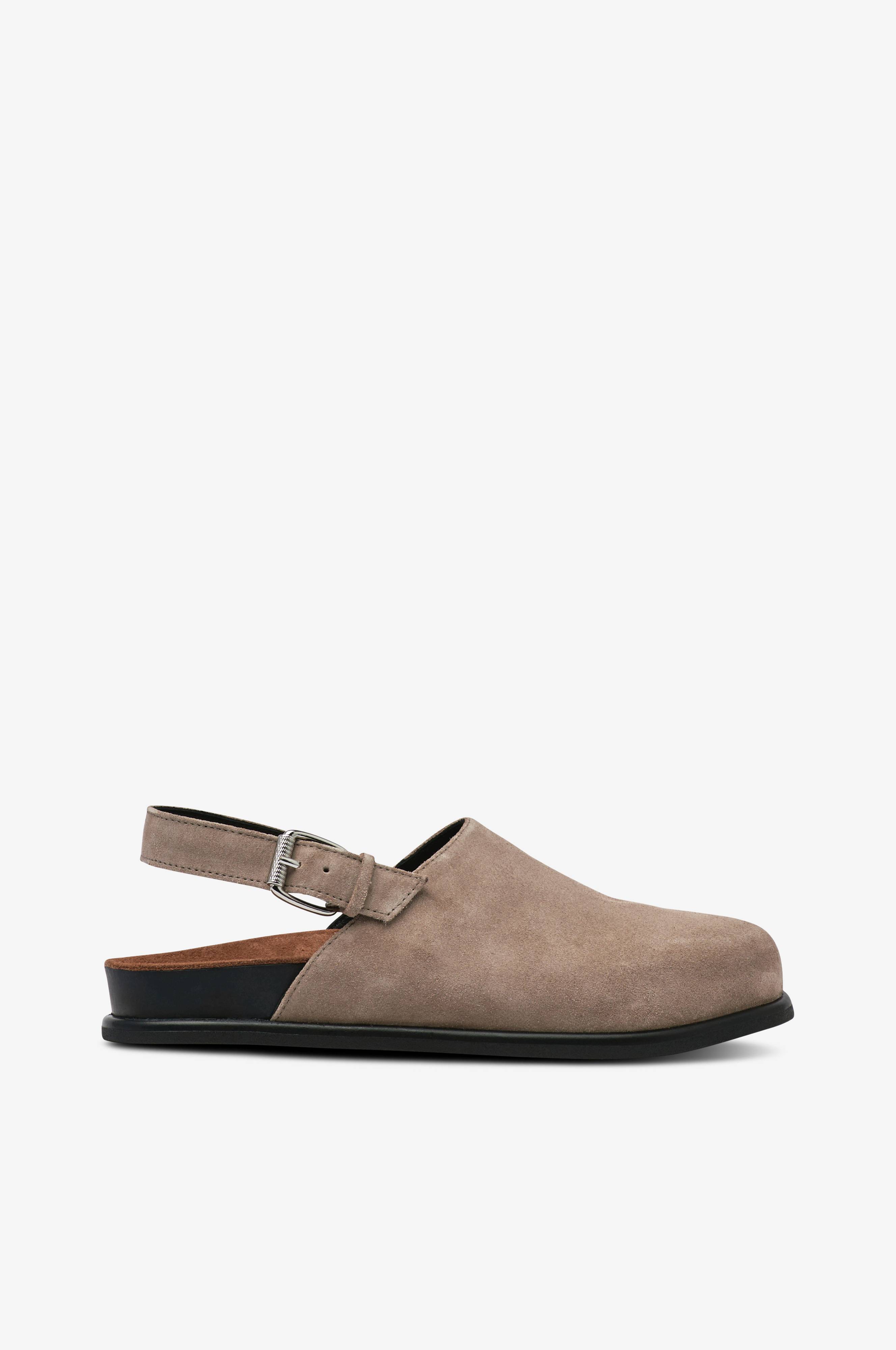 • Tøfler i ruskind• Justérbar hælrem• Formet fodseng i ruskind• Ydersål i gummi