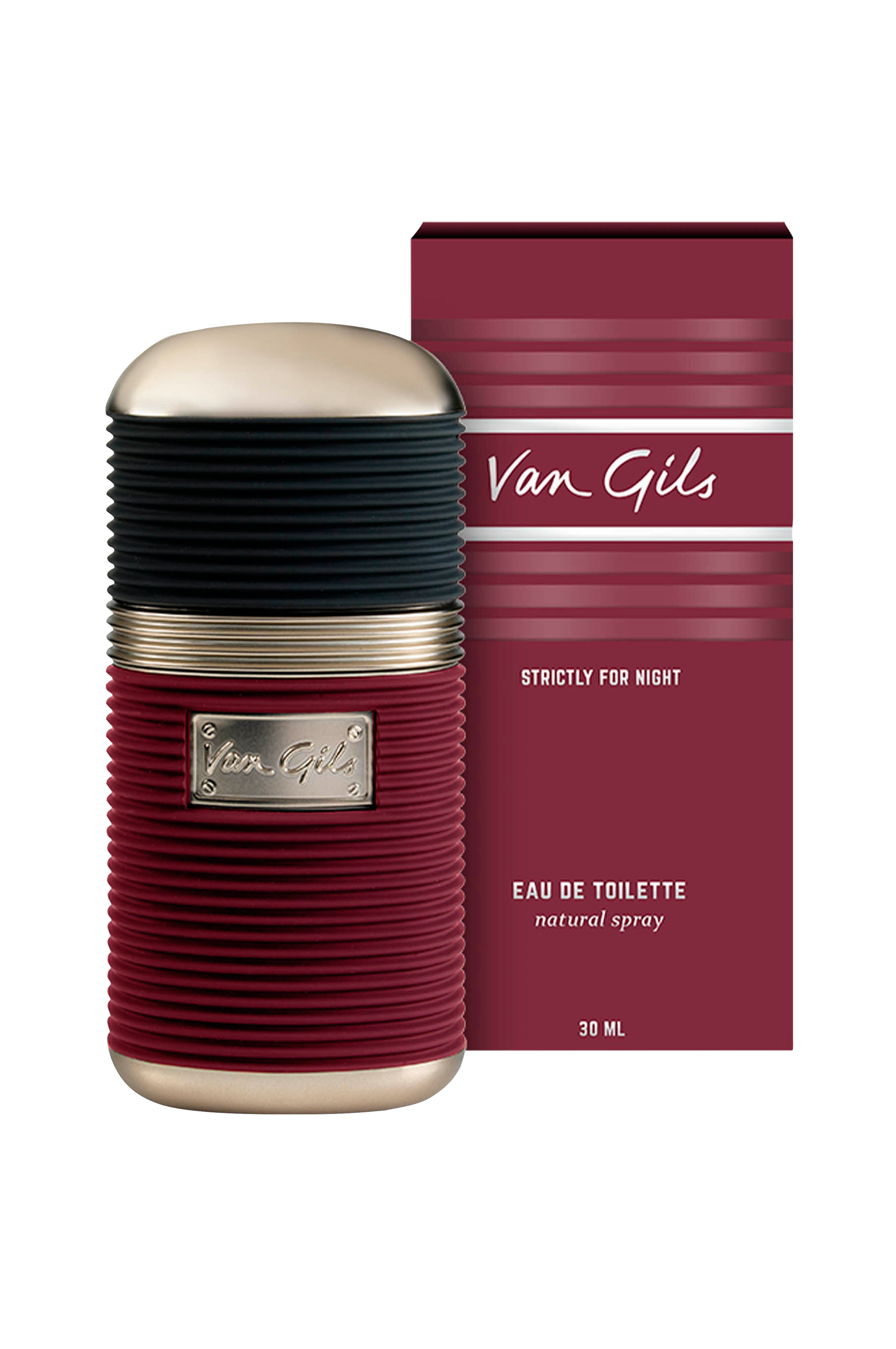 De slående topnoter af Van Gils Strictly for Night afslører en symfoni af aromaer med den søde duft af rød grapefrugt og saftige blommer, harmonisk blandet med et strejf af krydret peber og kardemomme. I hjertet af duften skaber en blanding af ingefær, geranium, aromatisk salvie og tobaksbark en berusende aura. Duften afsluttes med en varm og indbydende base, hvor noter af blond træ, sød vanilje, rig kakao og røget vetiver blander sig harmonisk.