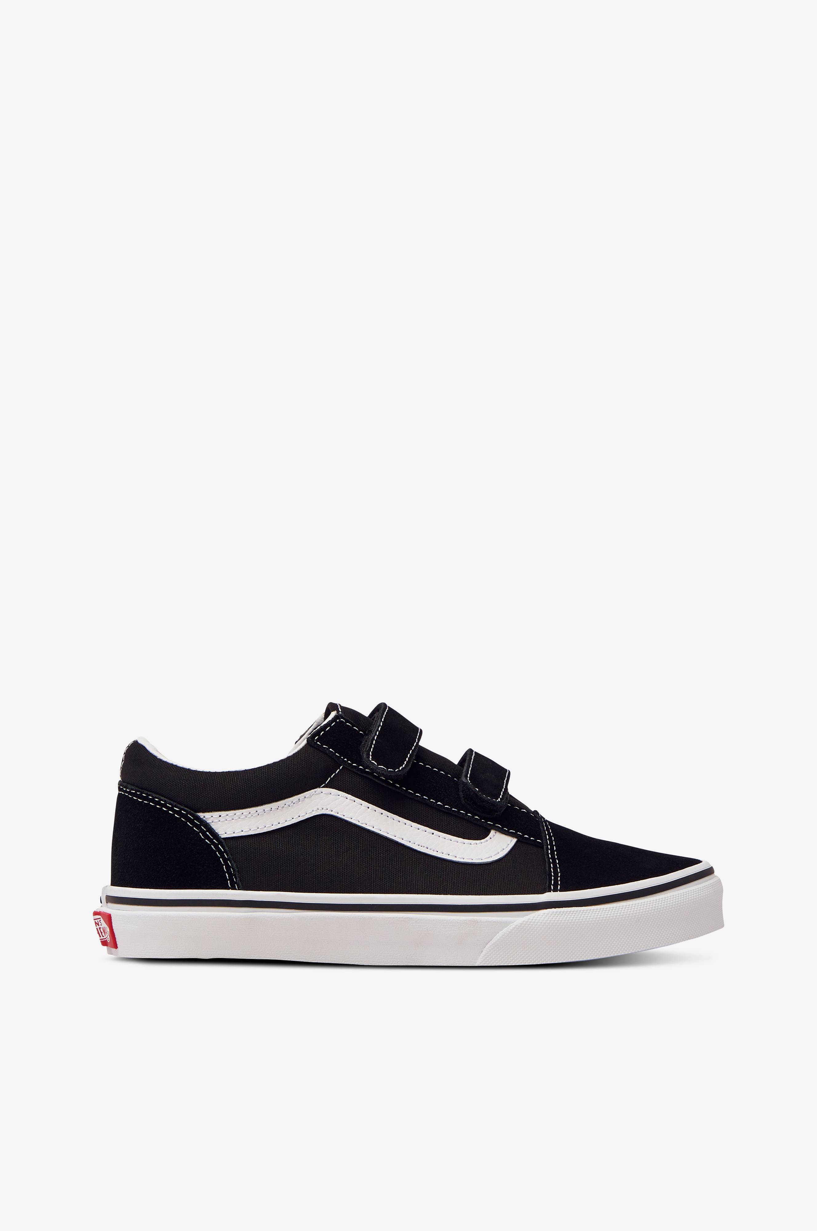 Sneakers JN Old Skool V fra Vans med overdel i ruskind, kanvas og skind. To velcrobånd over foden. Indersålen er blødt polstret og skaftkanten behageligt vatteret. Optrukket sålekant med Vans-mærke midt bagpå.