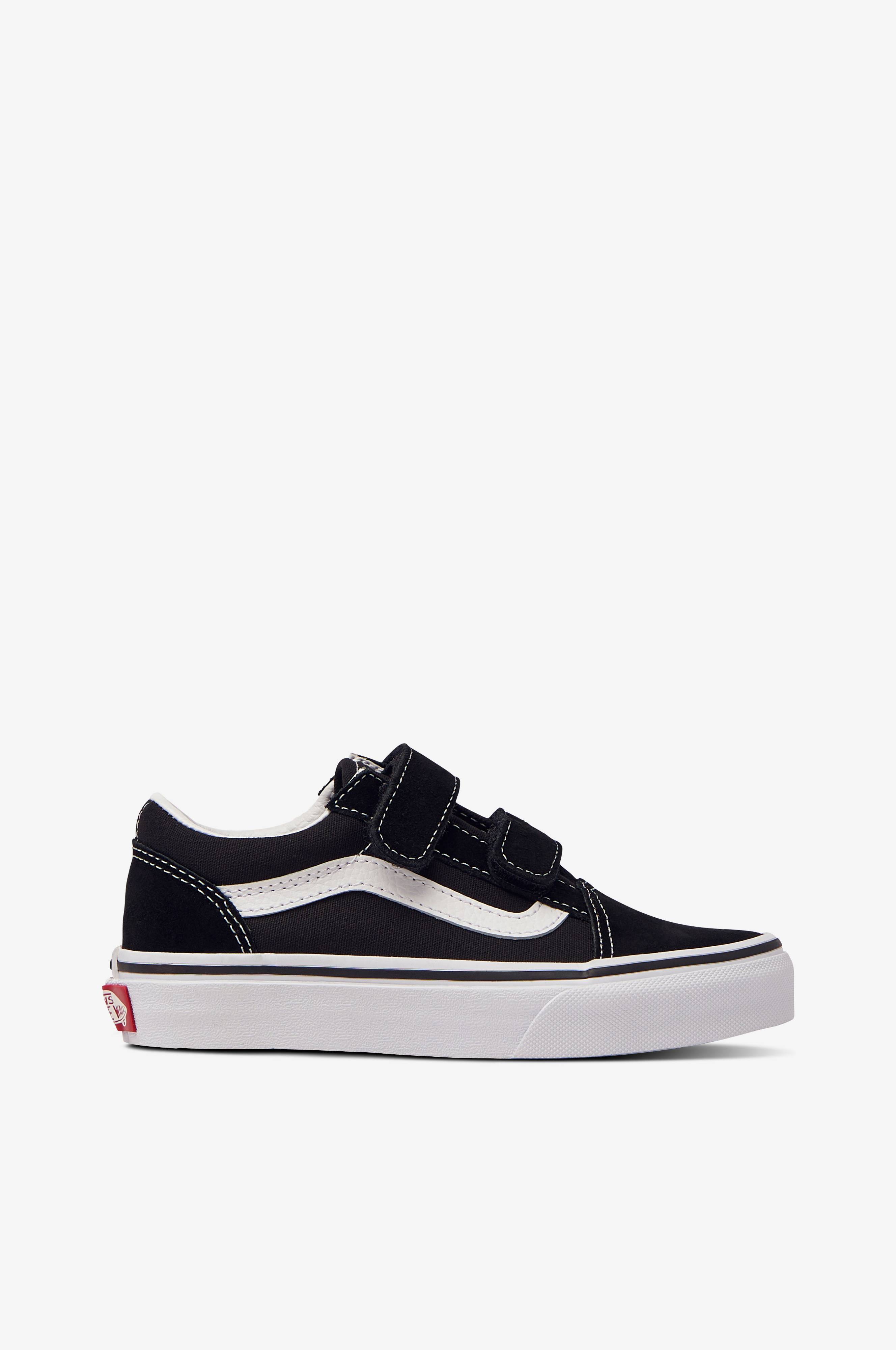 Sneakers UY Old Skool V fra Vans i en blanding af kanvas og ruskind. Praktisk model med velcroremme. Vatteret i kanten. Optrukken sålekant med Vans-mærke på sålekanten midt bagpå.