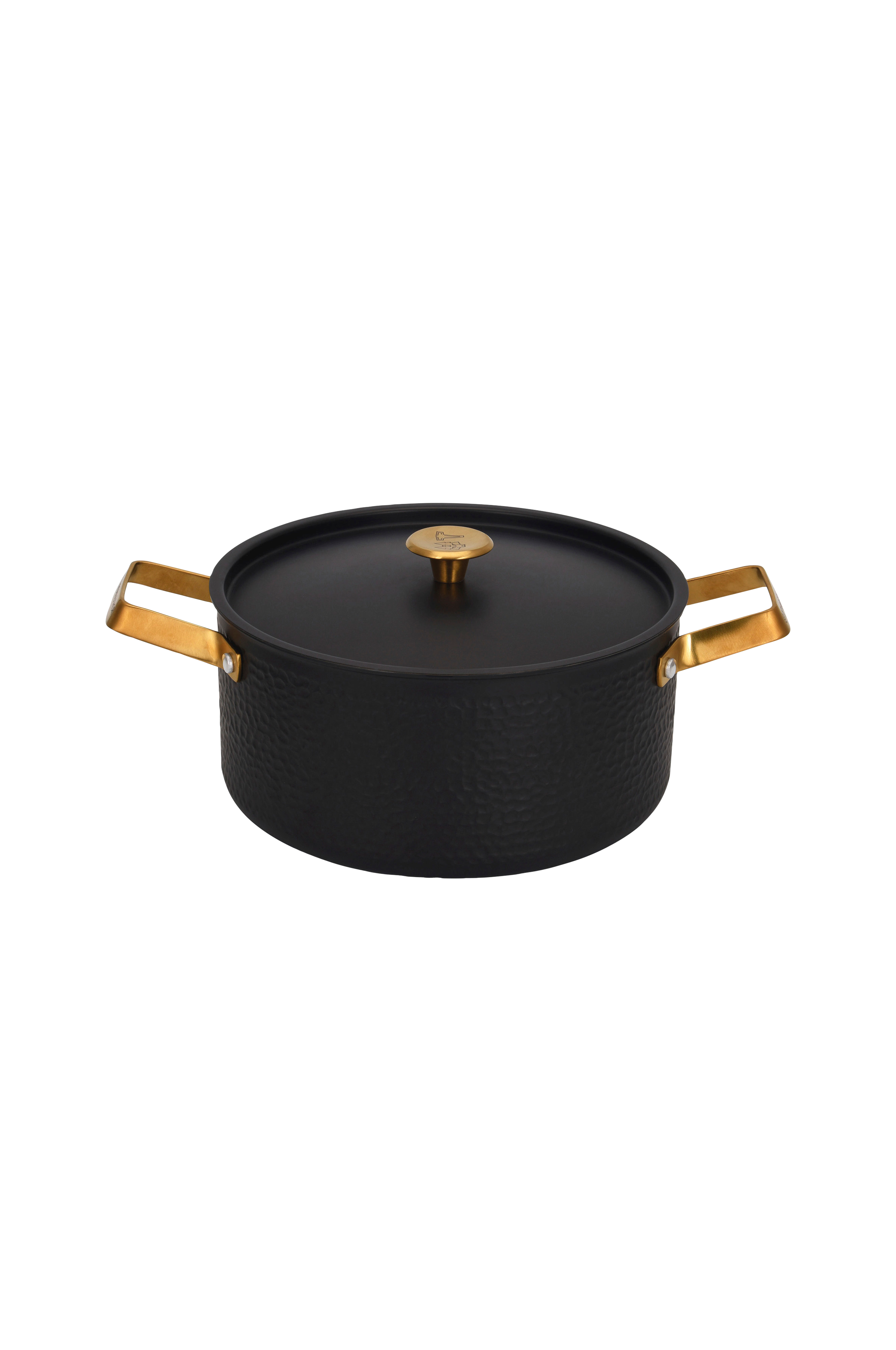 Vargen & Thor mio 4-liters gryde har et karakteristisk hamret, matsort look suppleret med messingelementer. Den passer perfekt sammen med de andre dele i Arvet-kollektionen og er et tidløst og unikt kulinarisk ikon.