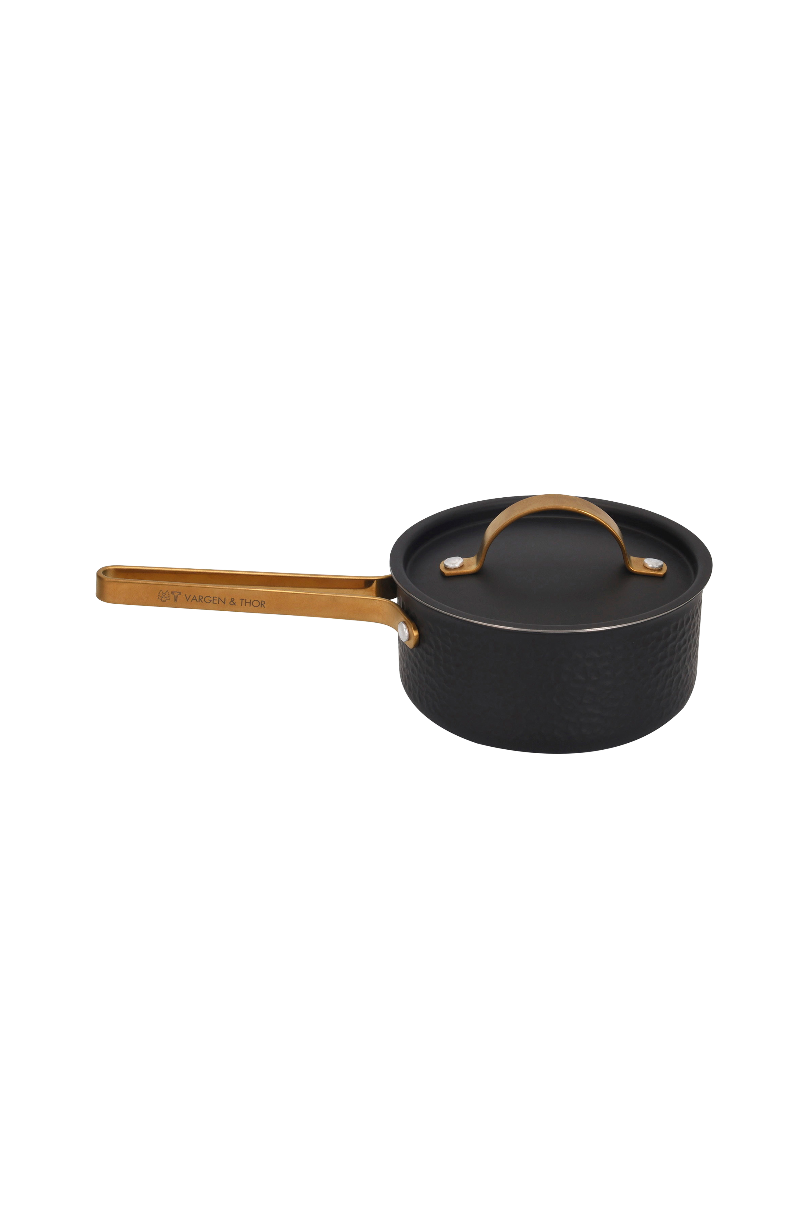 Viggo er en 1,6-liters gryde fra Vargen & Thor med en tydelig hamret, matsort belægning suppleret med messingdetaljer. Denne kompakte gryde passer harmonisk sammen med de andre produkter i Arvet-kollektionen fra Vargen & Thor og er et tidløst og unikt ikon inden for køkkengrej.
