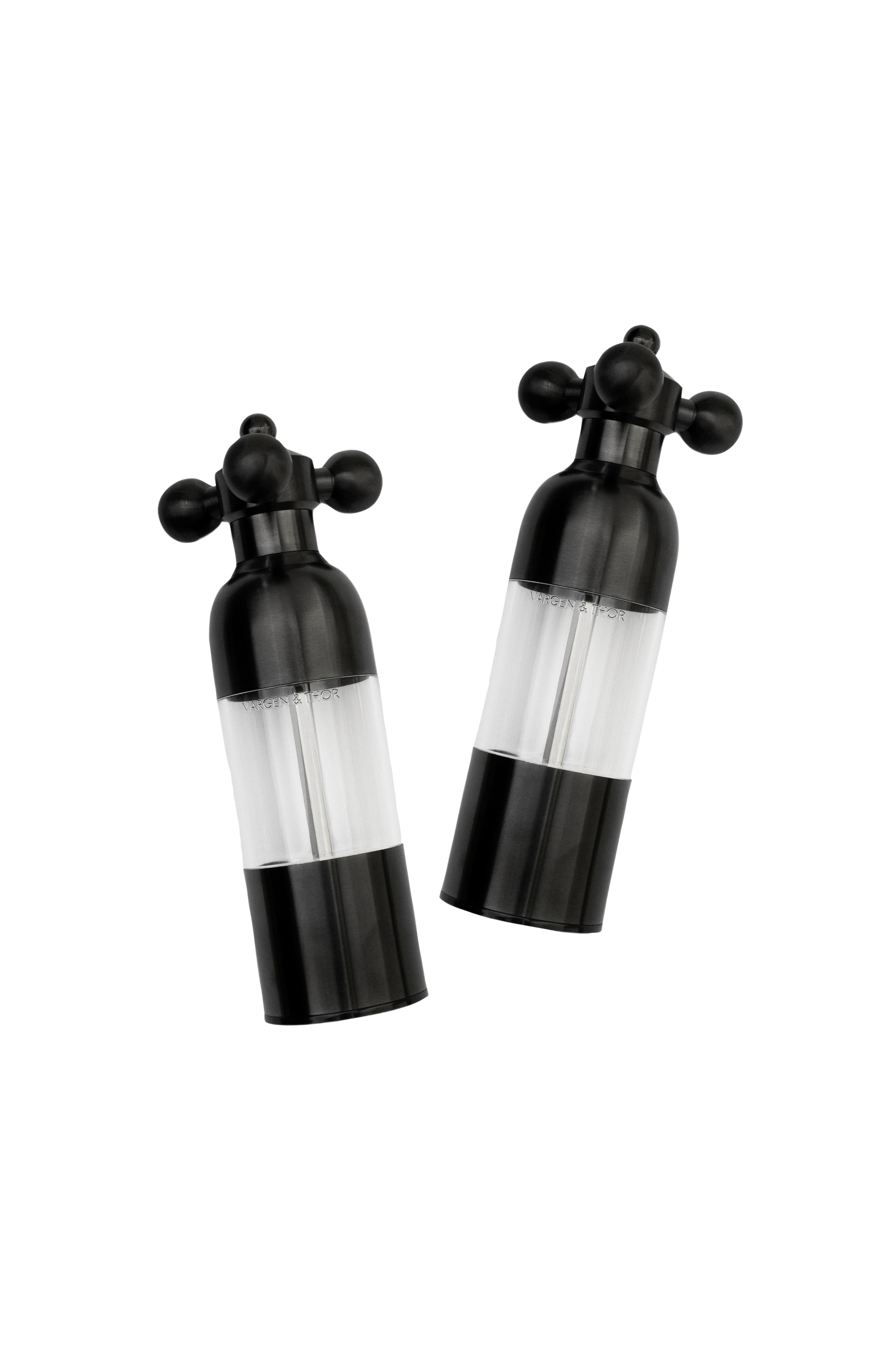 Vi præsenterer et elegant sæt af to Vargen & Thor salt- og peberkværne med glatte, havinspirerede former, der giver et moderne touch til ethvert køkken. Disse stilfulde kværne har justerbare kværngrader og er fremstillet af holdbart stål og akryl.