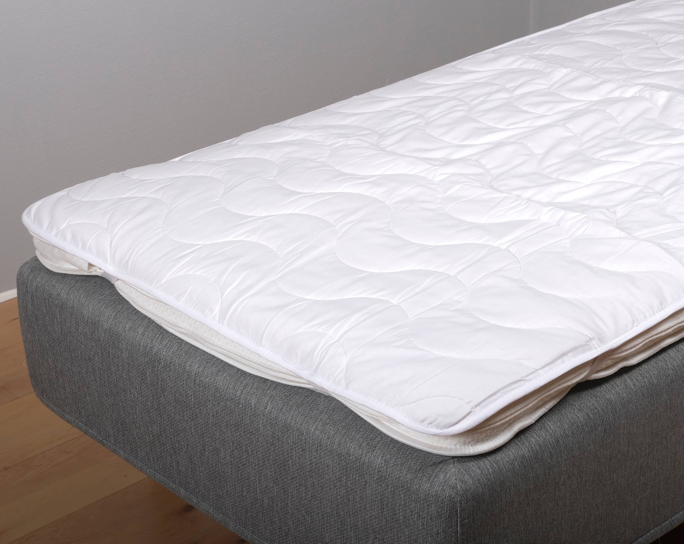 Madrasbetræk lavet af 100 % bomuld og fyldt med bomuldsvat.