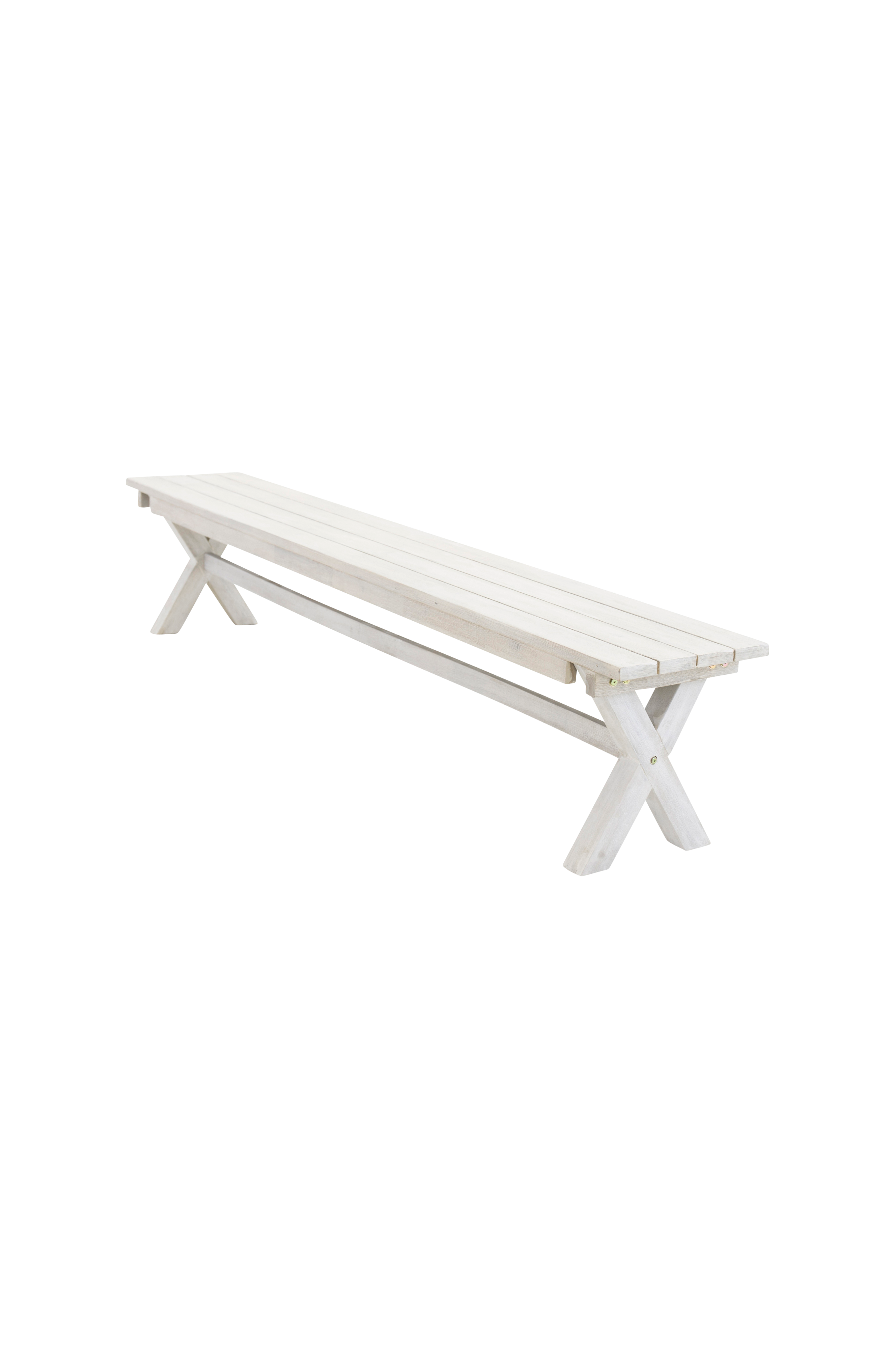 Stilfuld bænk til udendørs brug fra Rives-serien, lavet af akacie med en smagfuld finish. Denne tre-personers bænk fungerer fantastisk, hvis der er brug for ekstra siddepladser omkring spisebordet eller som en enlig detalje langs den solrige husmur. Det klassiske design får bænken til at føles indbydende, charmerende og tidløs. Suppler med en spisegruppe fra samme serie, og du får en matchende helhed på din terrasse!