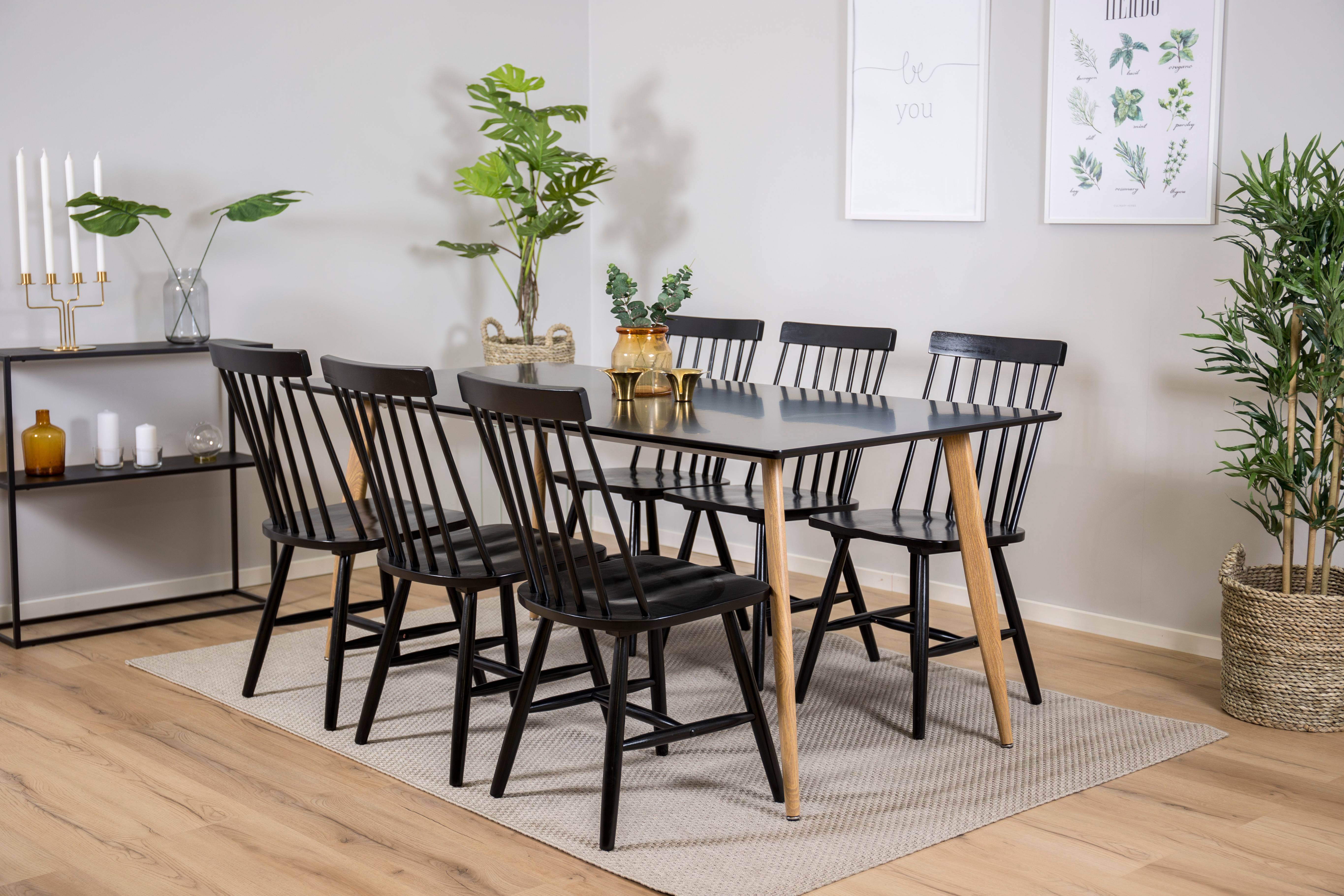 Moderne spisebord med sort bordplade og metalben i ege-look. Stabilt og praktisk bord. Bredde: 90 cm, Længde: 180 cm, Højde: 75 cm