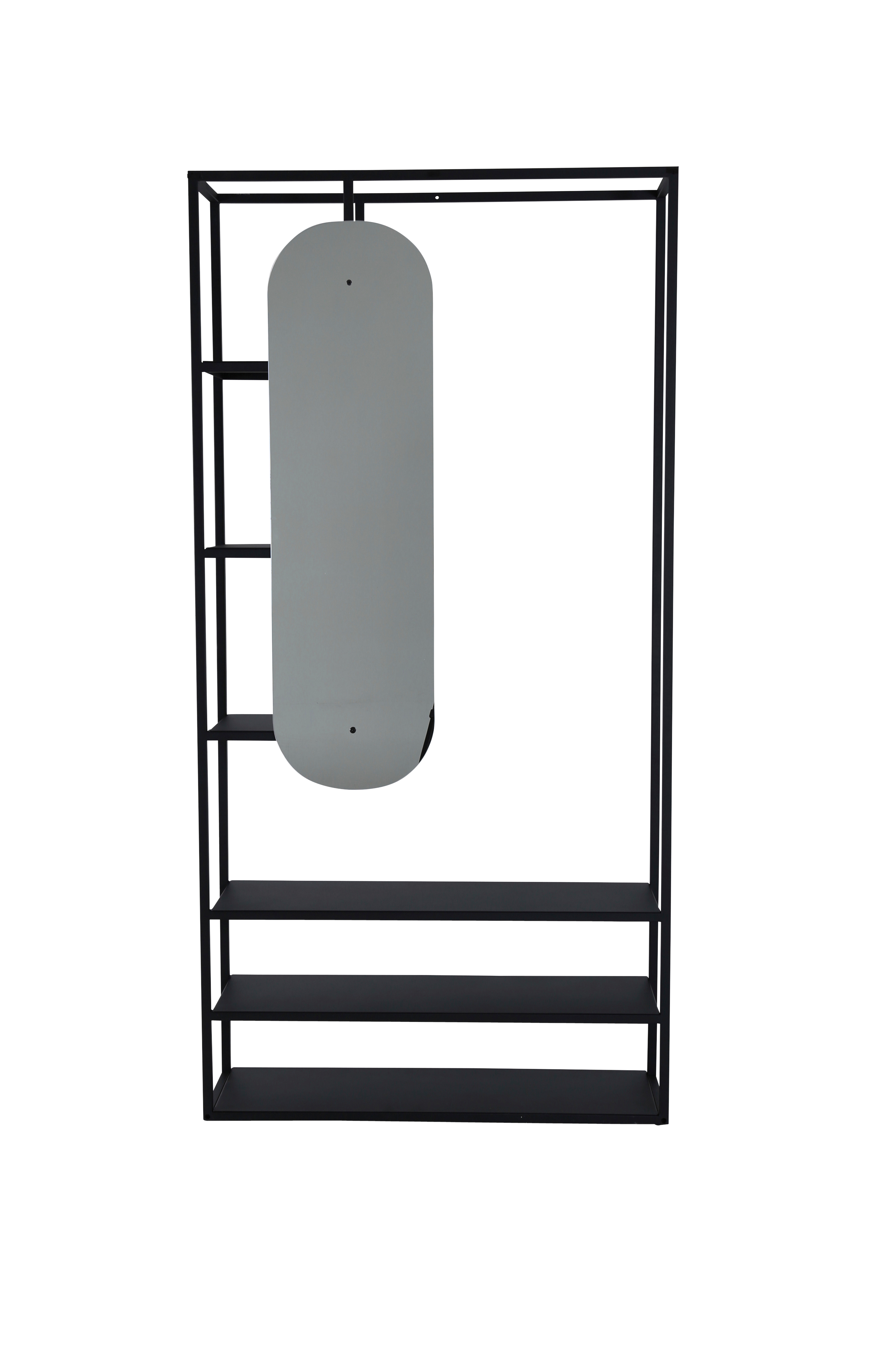 Classe garderobe med stel i metal og tilhørende spejl. Garderobens mål: Højde: 200 cm, Bredde: 100 cm, Dybde: 30 cm. Garderoben kræver let montering.
