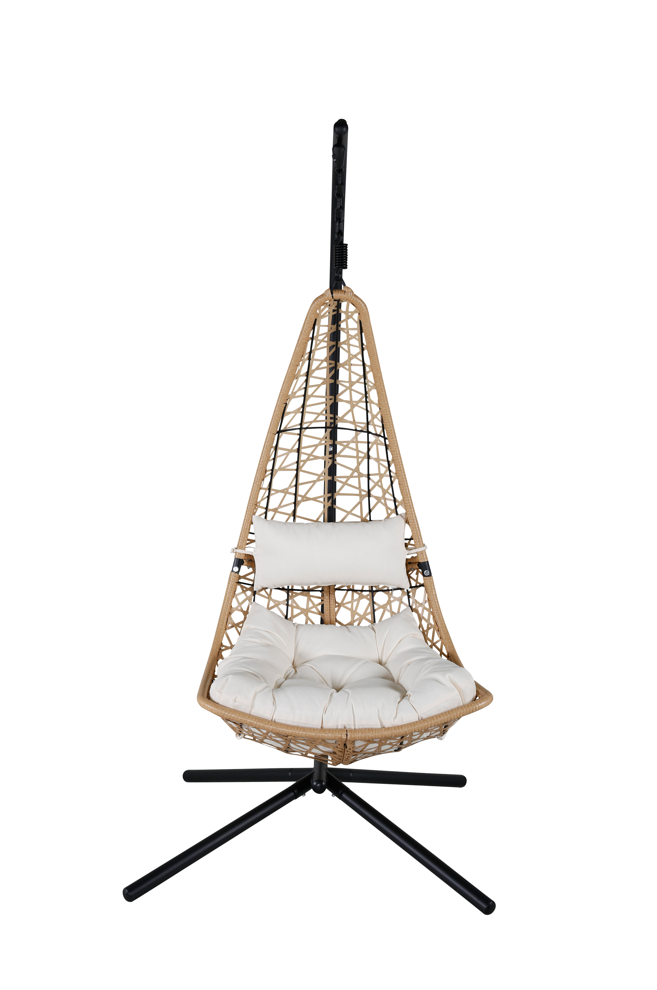 En rigtig trendsætter ude på altanen eller i haven, eller hvorfor ikke ved poolen? Stolen har et sæde i kunstrotting og der medfølger stålstel og matchende bløde hynder. Hent din yndlingsbog og nyd sommerens dovne dage i hængestolen Edinburgh! Stolen findes i flere farver.