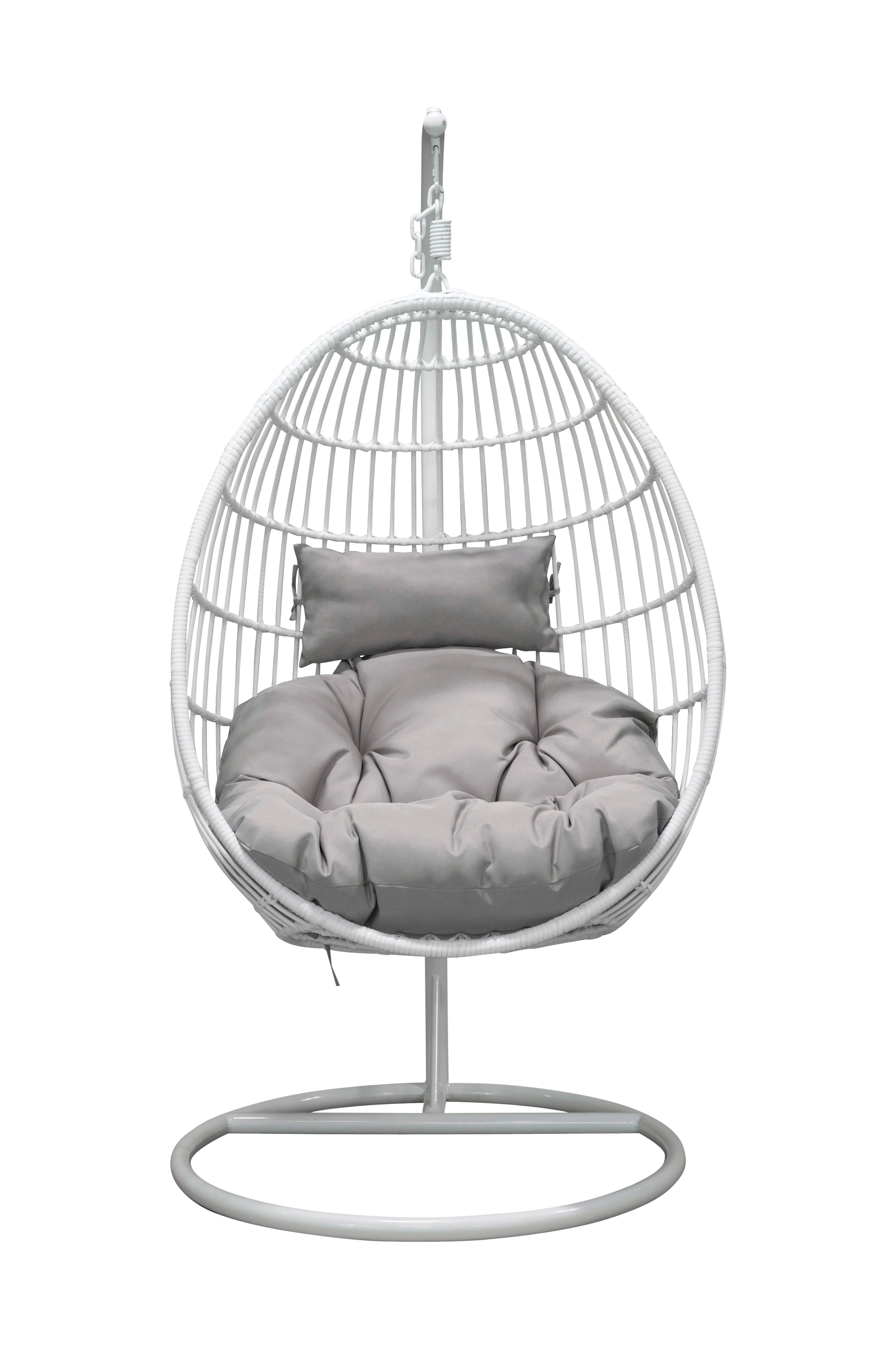 Vanja hængestol i hvid kunstrotting og en hynde i polyester. Stellet er i stål. Mål: Længde: 95 cm, Dybde: 95 cm, Højde: 196 cm og siddehøjde: 55 cm. Kræver let montering.
