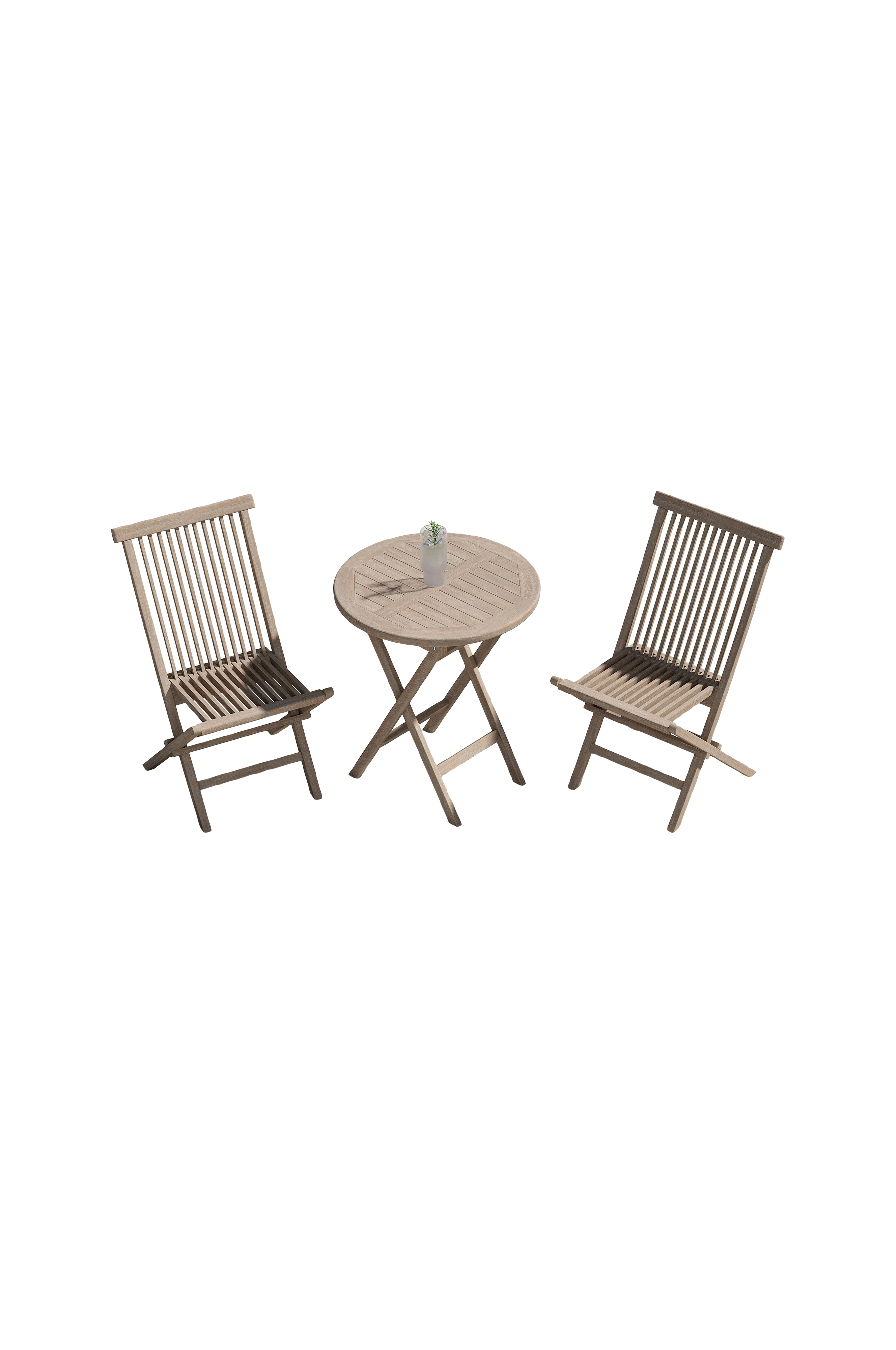 Teak er et holdbart og vejrbestandigt materiale, som naturligt udvikler en smuk patina med tiden. Kenya-cafésættet er perfekt til dem, der ønsker et elegant og naturligt møbelsæt, som giver en afslappet, men stilfuld stemning i deres uderum.