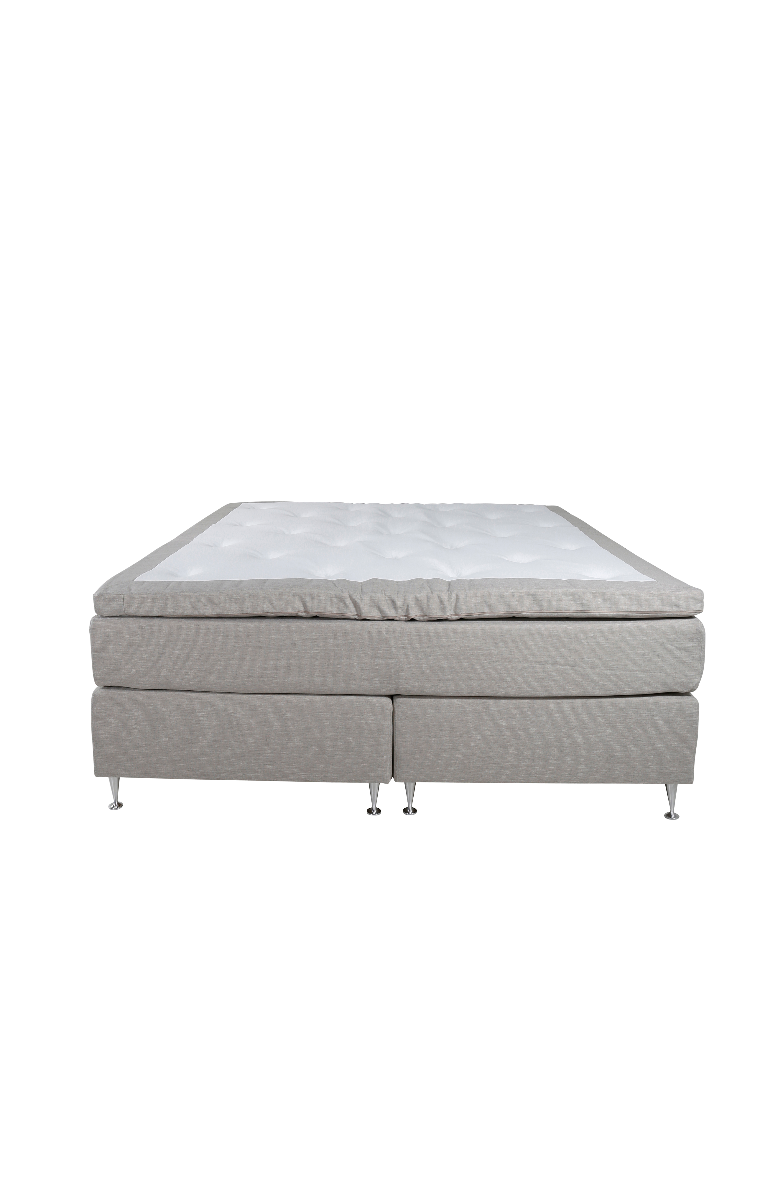Samlet set er sengen bygget til at give en ekstra skøn sovekomfort som muligt og give et ensartet indtryk i sit fuldt polstrede design. Hele sengen hviler på ben i sølvfarvet aluminium.