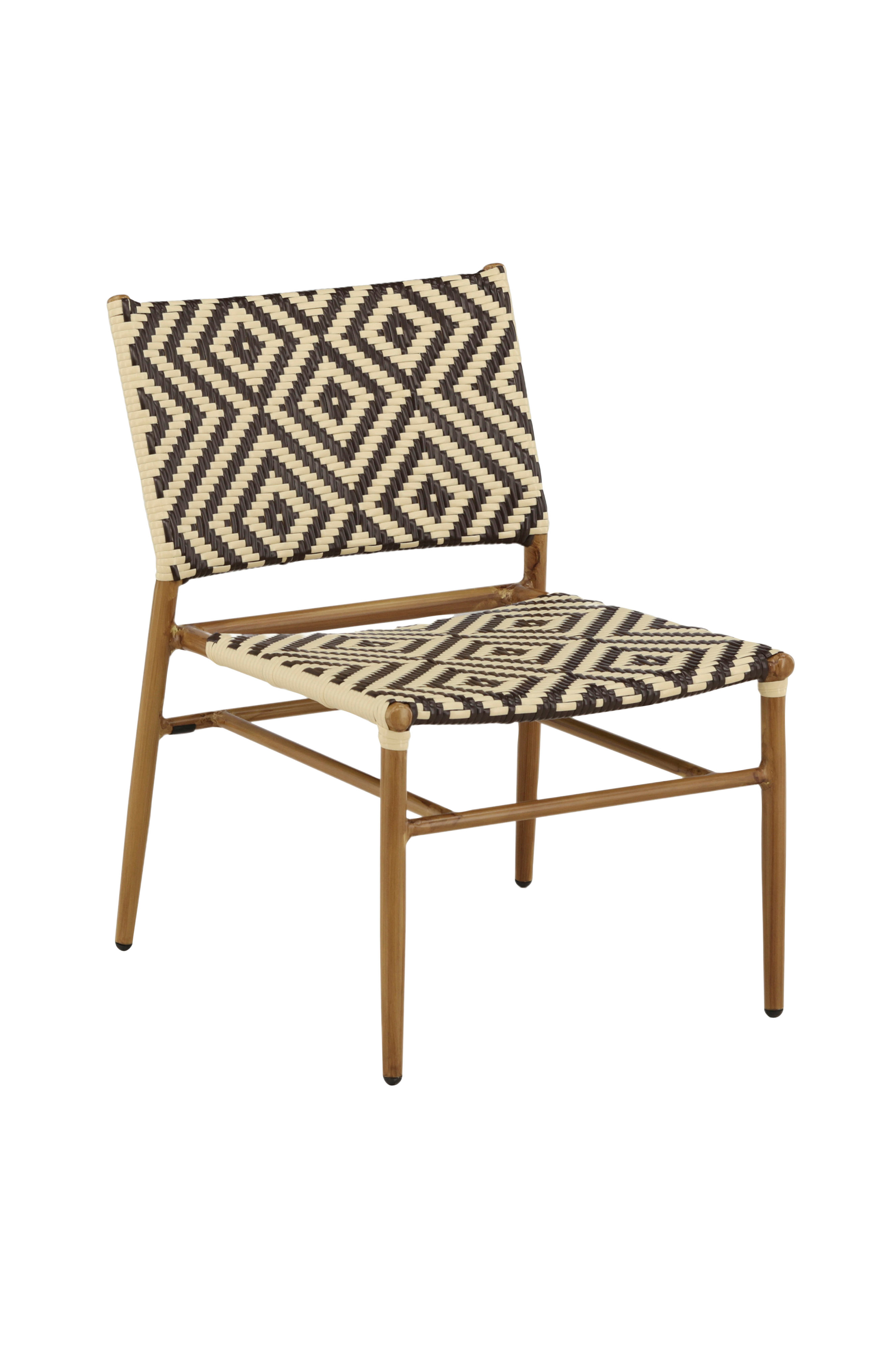 En loungestol, der imponerer med sit moderne design! Calapan er lige så stilren som den er trendy med sin dekorative ryg og sæde i mønstret kunstrotting i beige og brune farver og stel i naturfarvet aluminium. Placer alene som stilikon eller sammen med loungegruppen, så får du et luksuriøst blikfang i uderummet! Mål: højde: 77 cm, bredde: 57 cm, Dybde: 69 cm