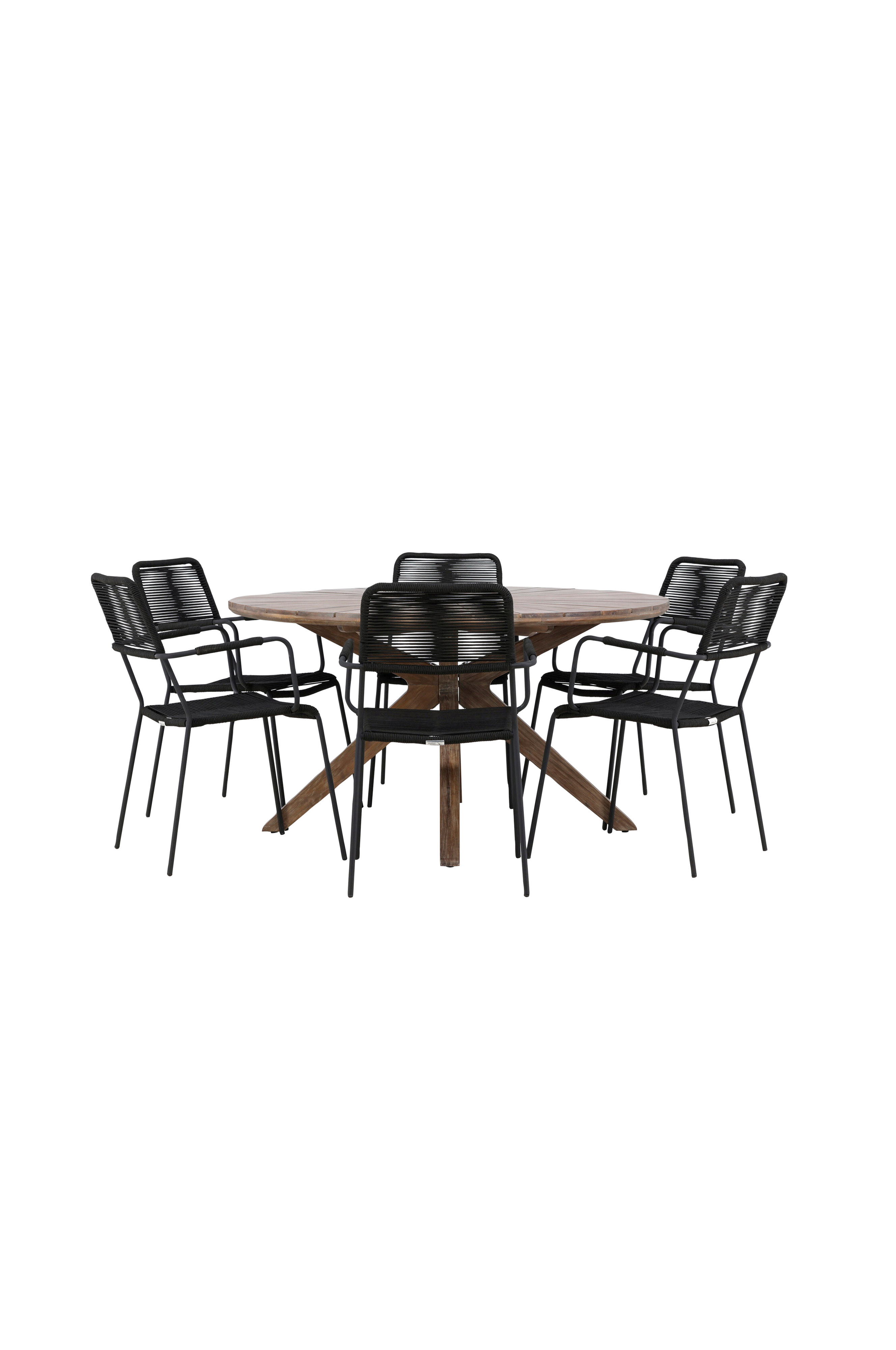 Oplev den perfekte kombination af modernitet og elegance med dette spisesæt, komplet med seks lindos stole og det stilfulde rosario bord. Dette imponerende ensemble er designet til at forvandle dit udendørsmiljø til et trendy og indbydende sted at tilbringe tid.
