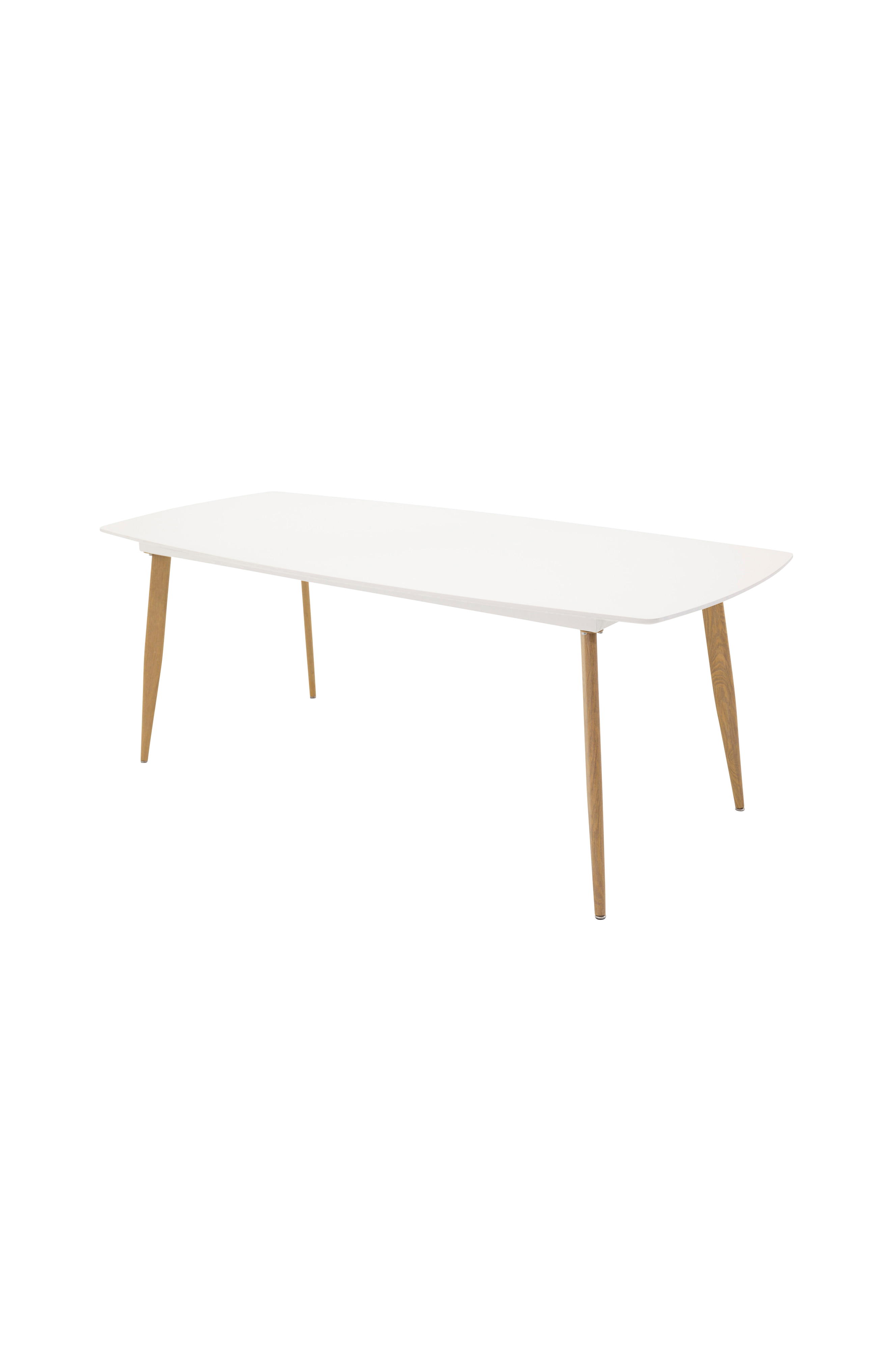 Penally Spisebord Elips er et moderne og stabilt spisebord med MDF-plade og ben i metal og egetræslook. Mål: Længde: 240 cm Bredde: 100 cm Højde: 75 cm Afstand mellem bordben: 185 cm. Leveres usamlet.