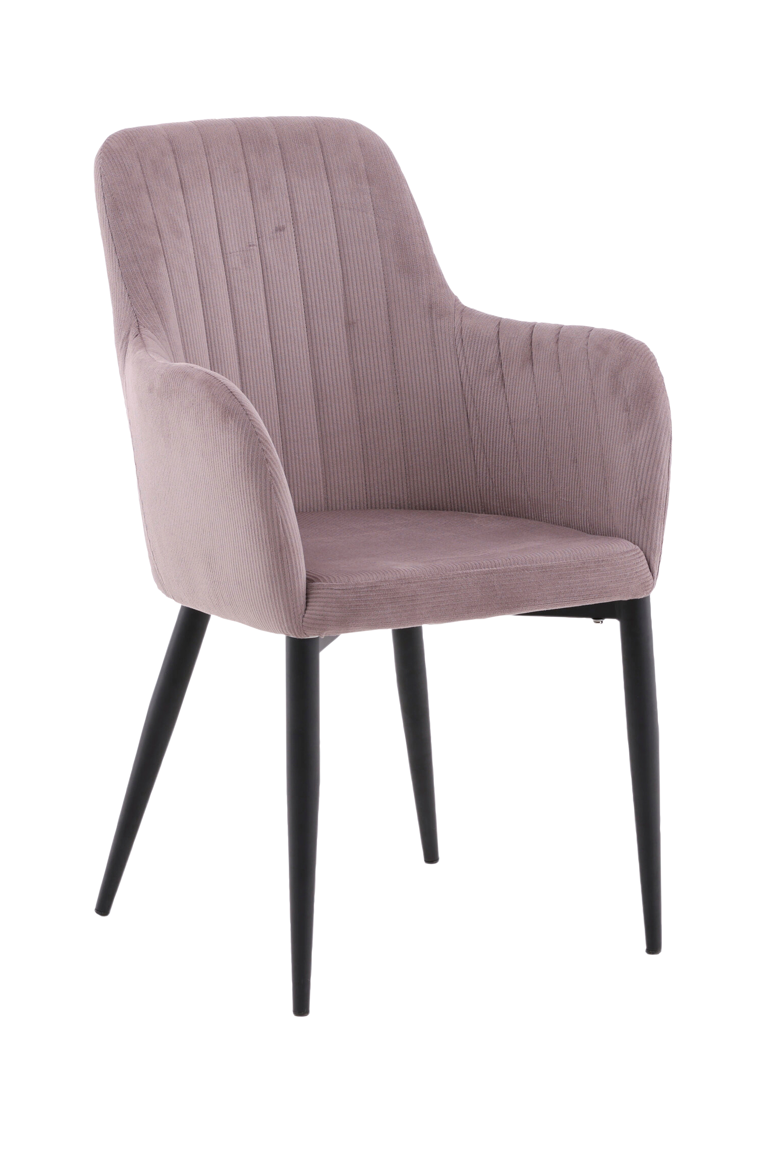 Behagelig og stilren stol i fløjlsstof med sorte ben i metal. 2-pak. Bredde: 57 CM Højde: 92 CM Dybde: 62 CM Siddehøjde: 48 cm Kræver let montering.