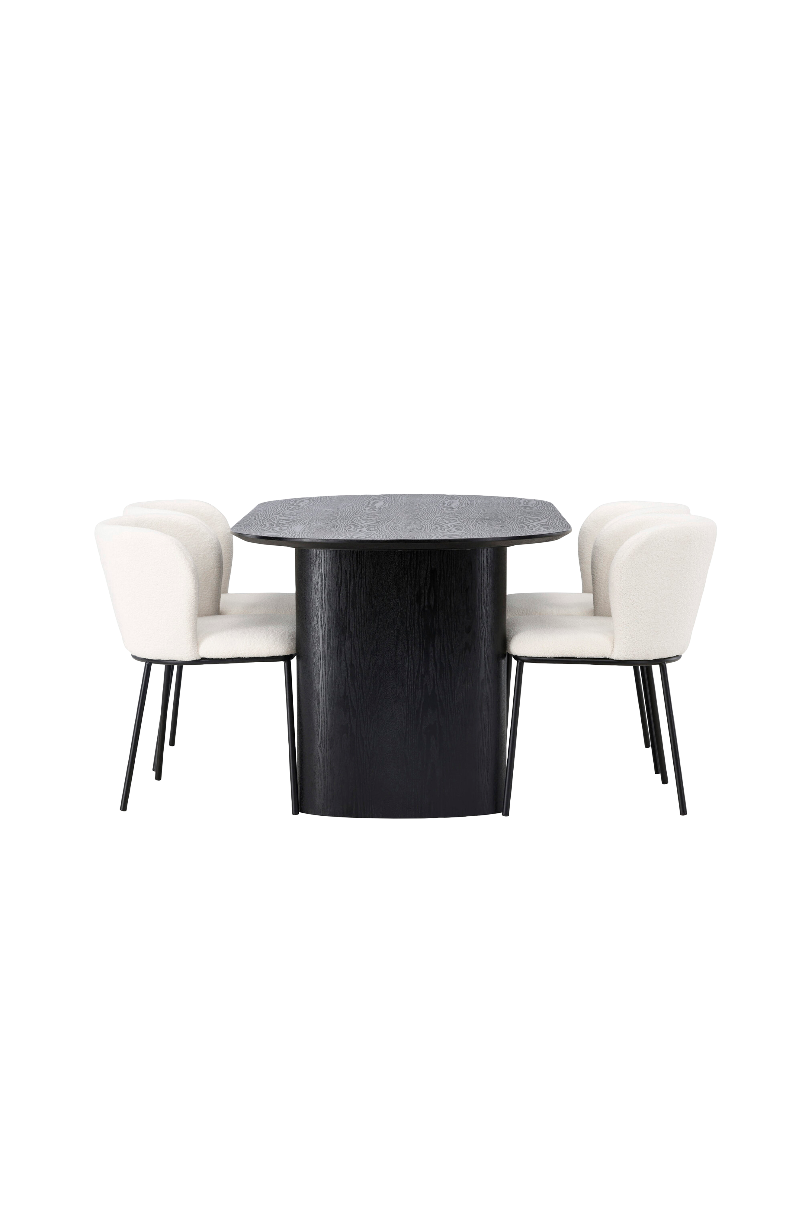 En fantastisk kombination af moderne former og bløde materialer! Det ovale spisebord Isolde i stilfuld farve har et moderne design med en oval bordplade i MDF og robust stel, der giver et solidt indtryk. Det levende materiale giver smagfuld bevægelse til blikfanget. Her i en vidunderlig kombination med stole fra Edina-serien. Stolen har et smidigt, fuldt betrukket sæde i boucléstof og minimalistiske stoleben i metal. Det stilfulde design og det behagelige sæde giver dig en komfortabel spisebordsstol, der holder tidens tand.