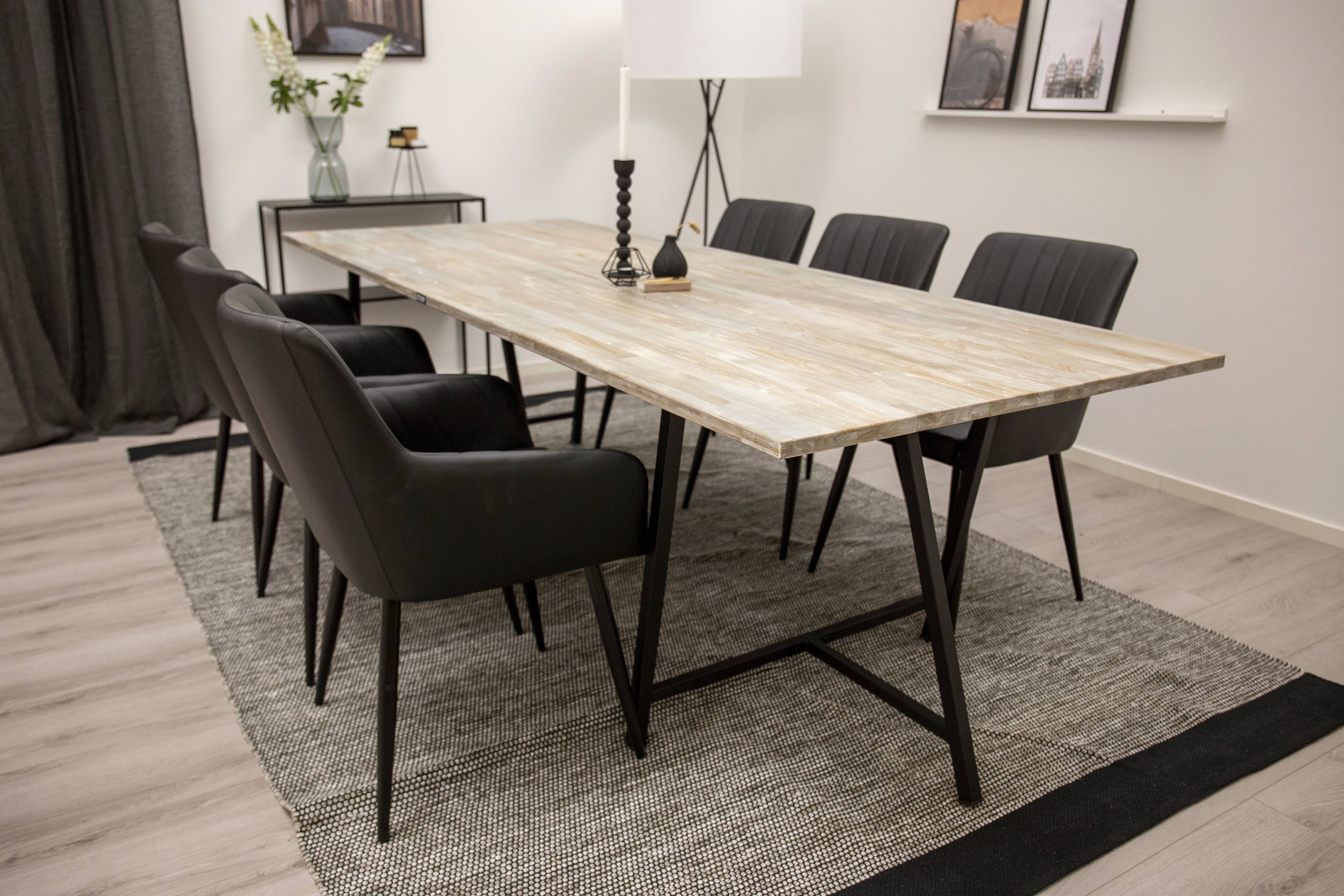 Spisebord Jepara bliver noget helt særligt med sine unikke bordben. Sammen med Comfort spisebordsstole i læderlook bliver spisegruppen elegant og robust - perfekt for et indbydende look i hjemmet!