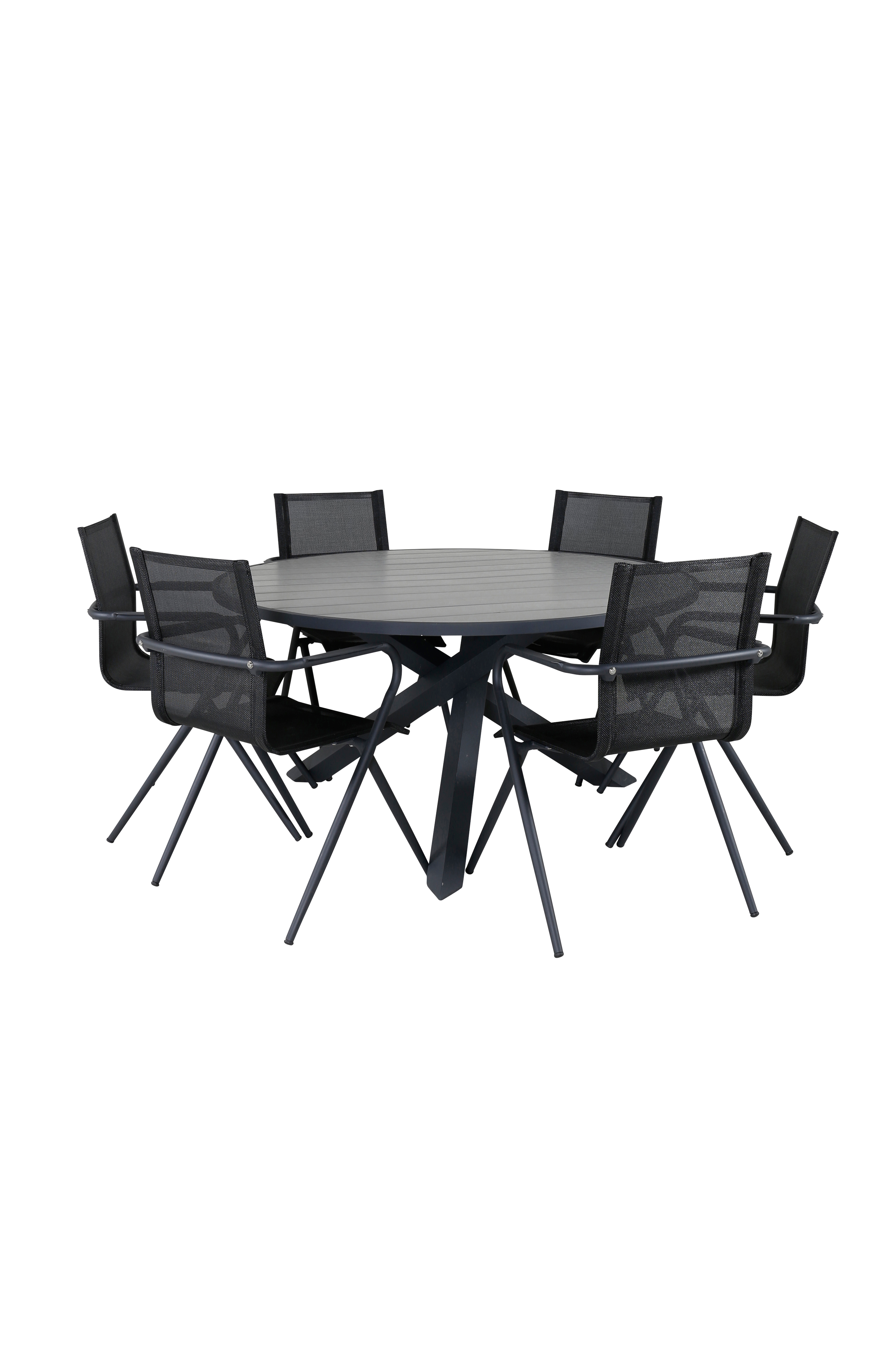 Med en rund spisegruppe skaber du nemt en indbydende og social stemning på din terrasse - her havner ingen på kanten! Spisebord Parma med robust stel kombineres med stole fra serien Alina. Sid behageligt denne sommer og forlæng de hyggelige middagsstunder.