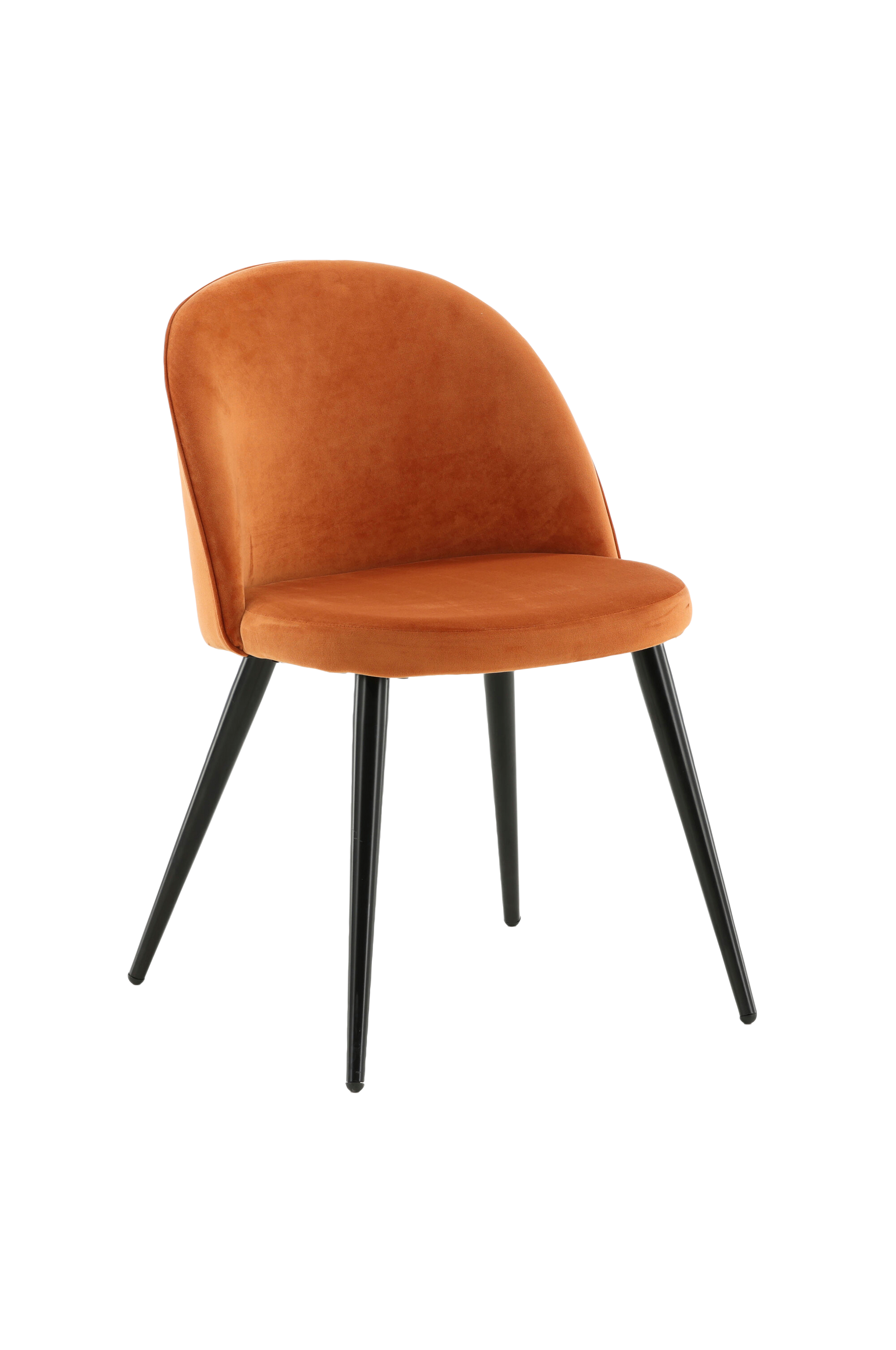 Stolen har et fuldpolstret design, ben i sort pulverlakeret metal og afrundet ryg og sæde i fløjlsstof med blød polstring. Lige så behagelig som iøjnefaldende! Lettere samling kræves.