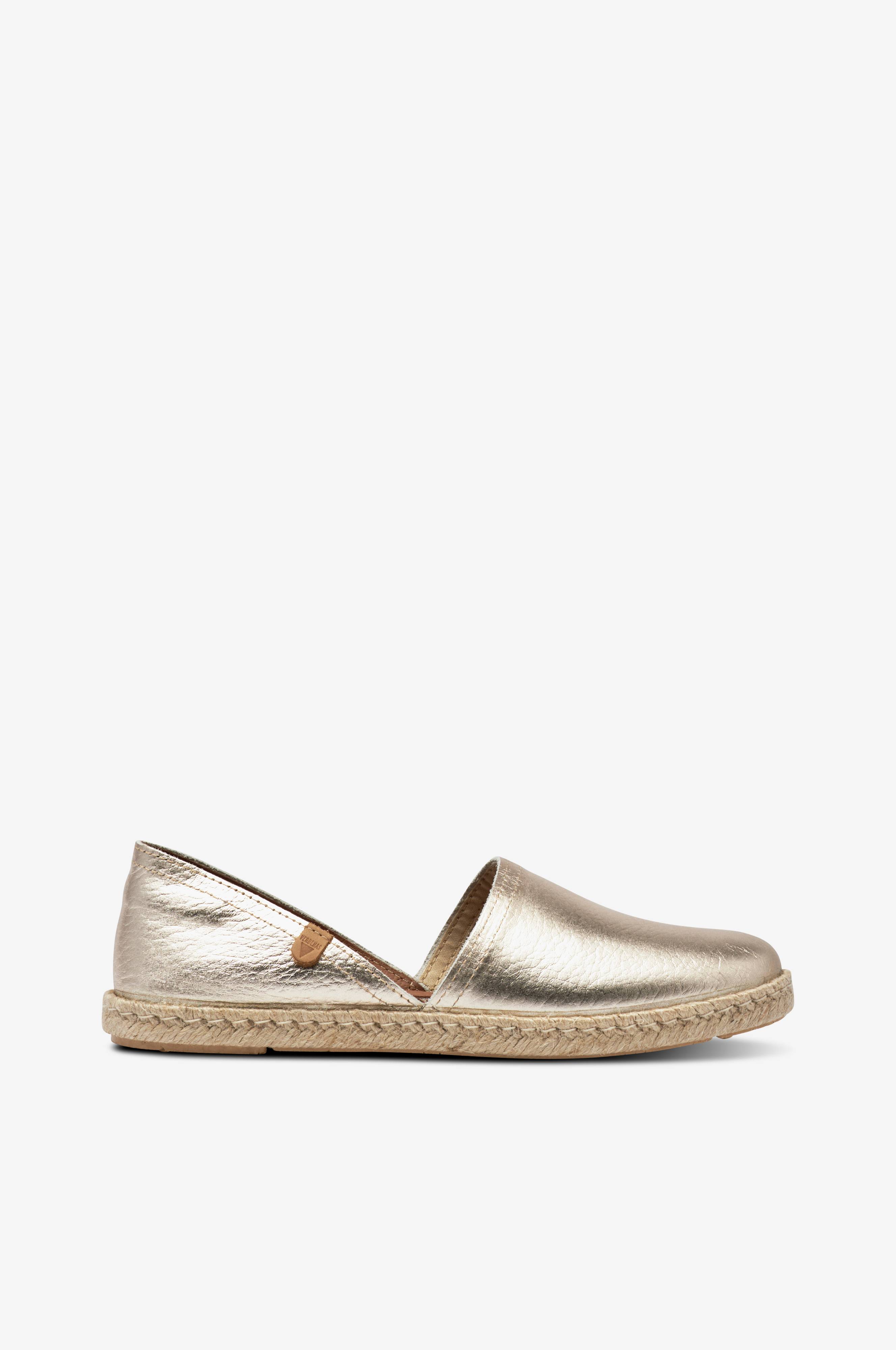 • Øvredel i guldfarvet læder• Rebbeklædt sål• Inderside i læder