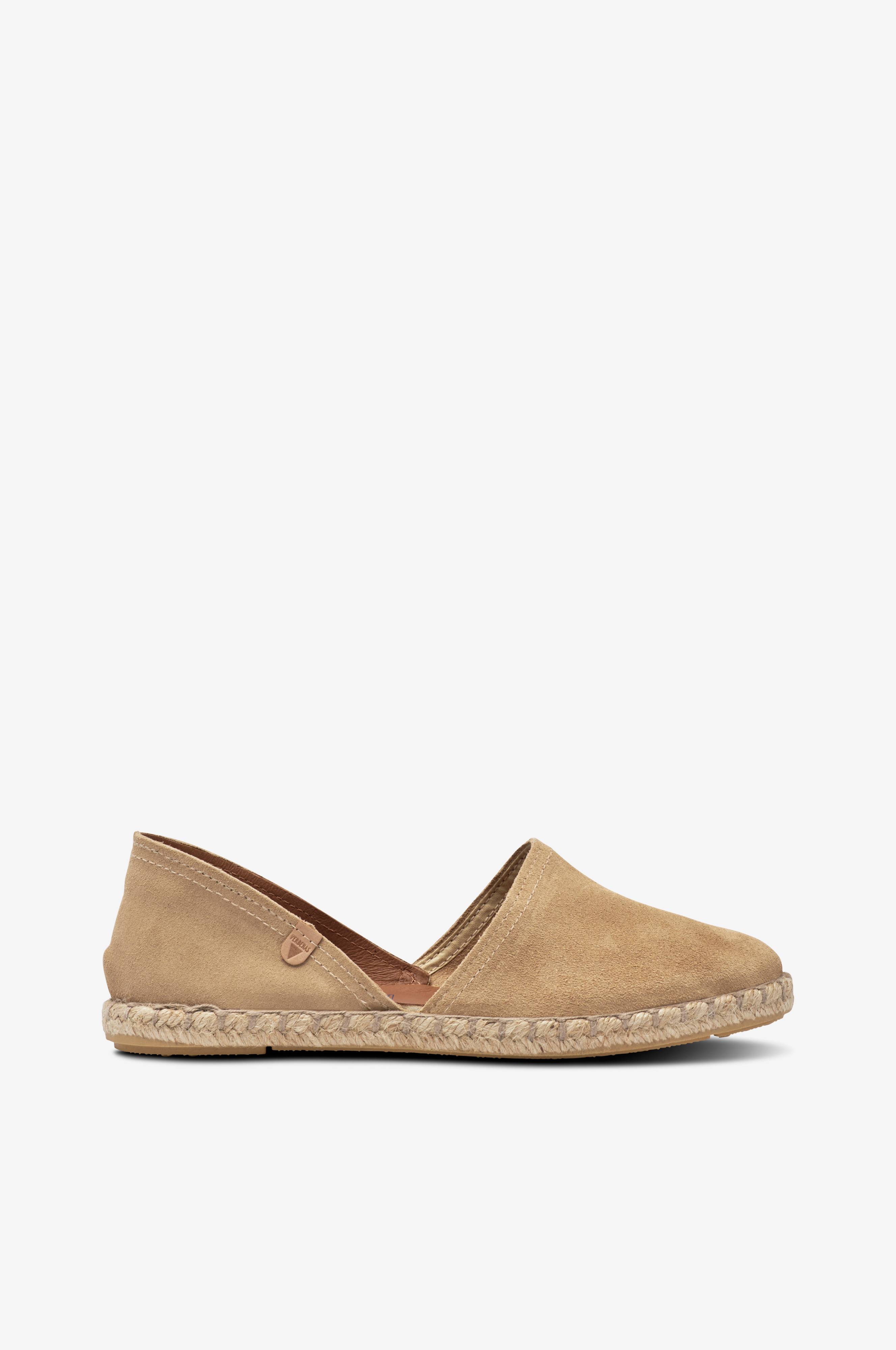 • Espadrilloser i ruskind• For i læder• Blød polstret, læderbetrukket indersål• Rebbeklædt midtersål i jute• Ydersål i gummi