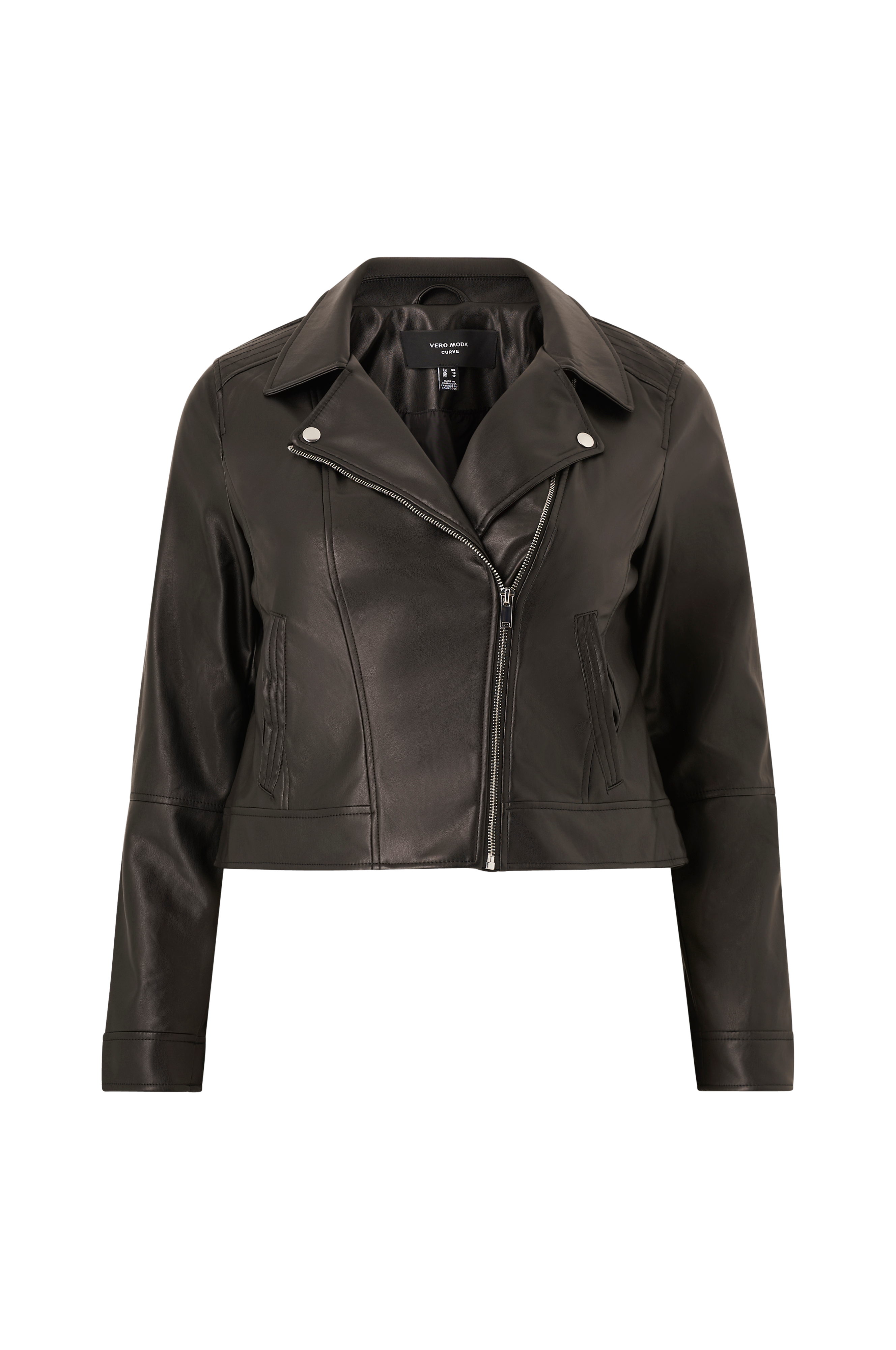 • Jakke i imiteret læder• Asymmetrisk lynlås• To lommer• Vævet for• Store størrelser• Længde: 50 cm i størrelse 44