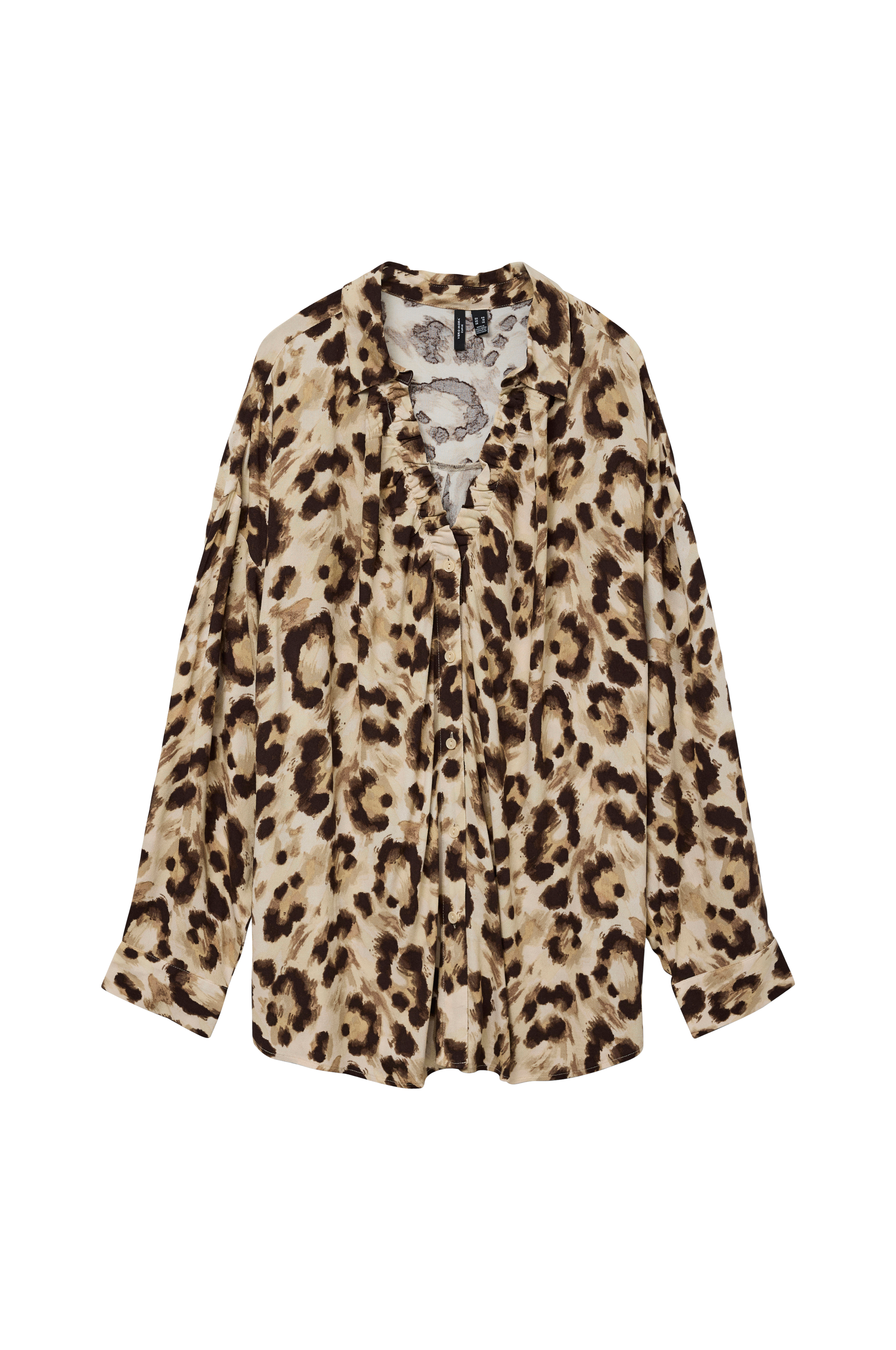 • Store størrelser• Bred, lige model• Lille krave• V-udskæring• Knapper foran• Nedsænket skulder• Langt ærme med manchet• Afrundet søm
