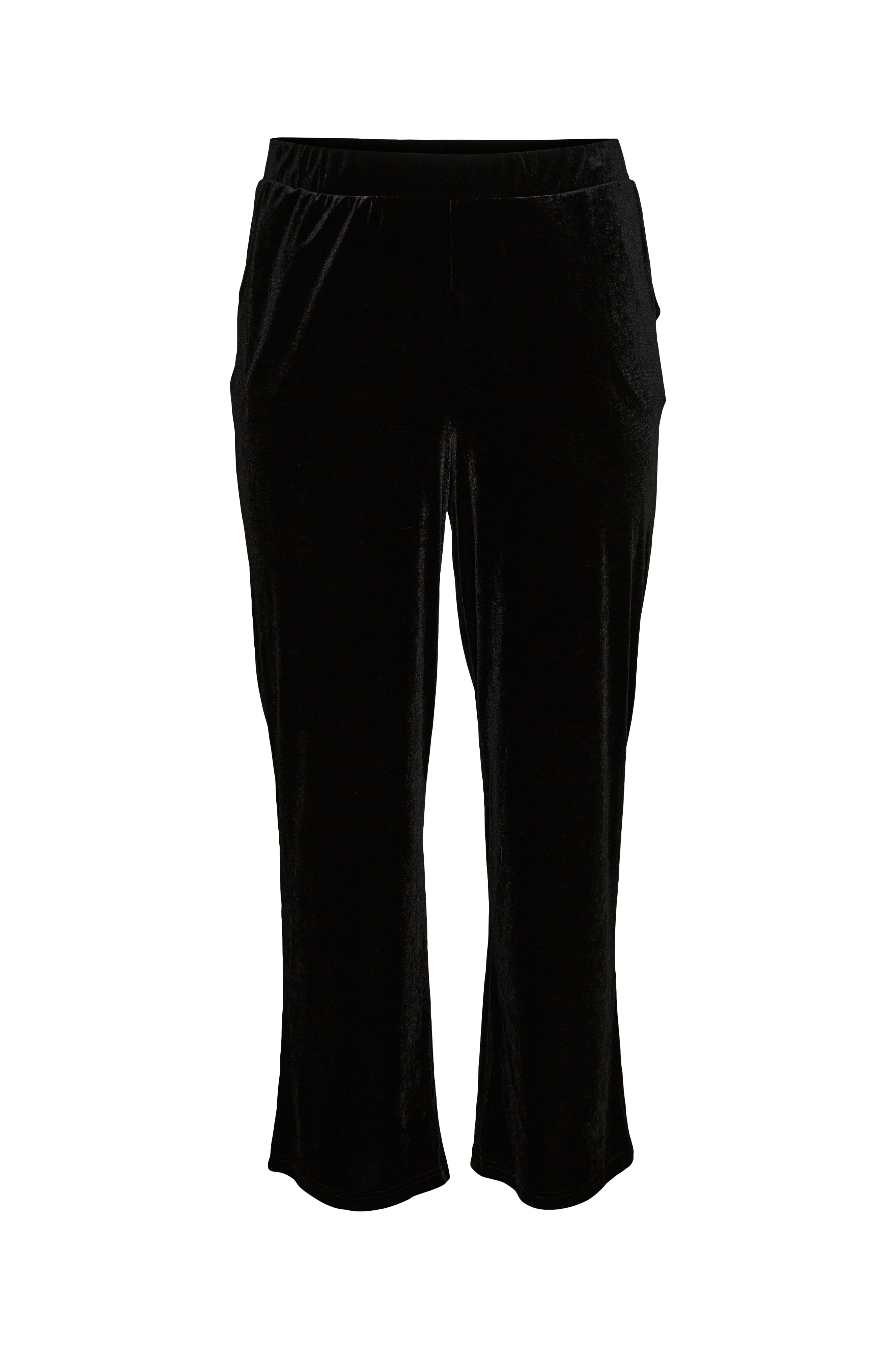 • Store størrelser• Model i fløjl med brede, lige ben• Linning med elastik• Indlagte sidelommer• Indre benlængde: 77 cm i størrelse S